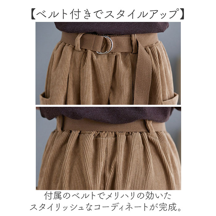 | 商品説明 | 【体型カバーワイドパンツ】ポケット付きで実用性も抜群なコーデュロイボトムス。【ワイドシルエットで体型隠し】ゆったりとしたワイド設計が気になる下半身をカバーし美しいシルエットを演出◎【ウエストゴムで快適フィット】伸縮性のあるウエストゴム仕様により体型を問わず心地よいフィット感を実現!【ベルト付きでスタイルアップ】付属のベルトでメリハリの効いたスタイリッシュなコーディネートが完成。【コーデュロイの暖かな質感】秋冬シーンにぴったりのコーデュロイ。肌触りも抜群♪【サイドポケット付きで便利】両サイドにポケットを配置し小物の収納に便利〇 |