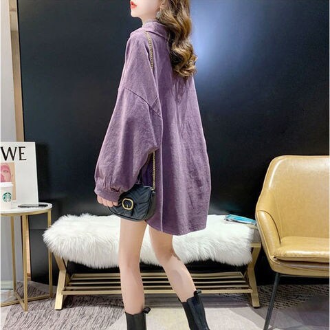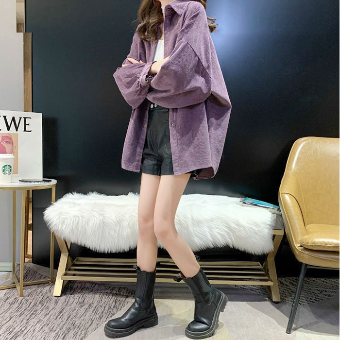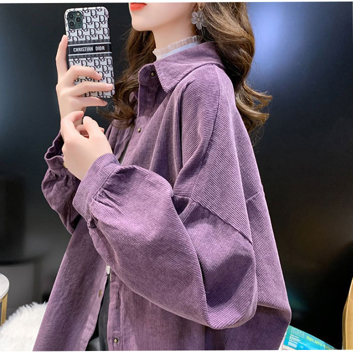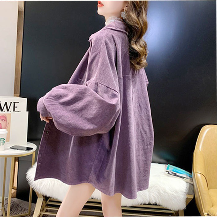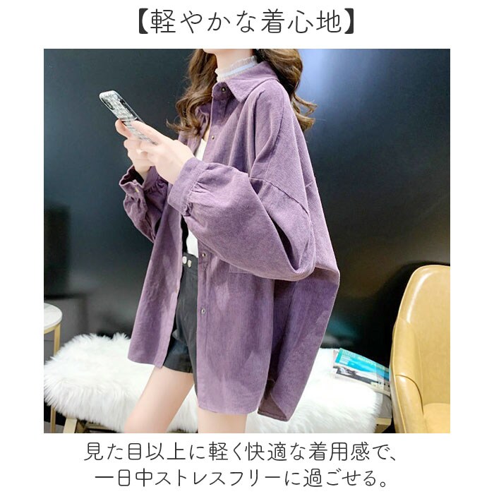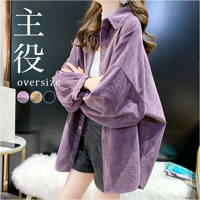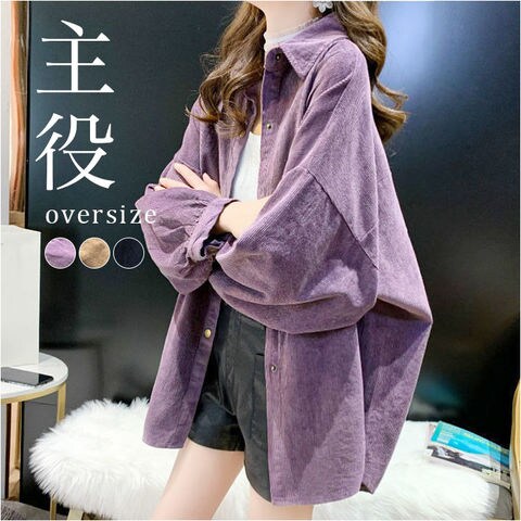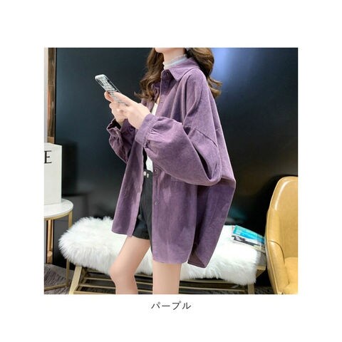 コーデュロイブラウス トップス オーバーサイズ【パープル】【Lサイズ】