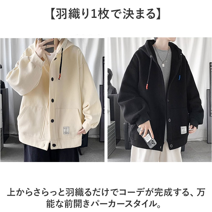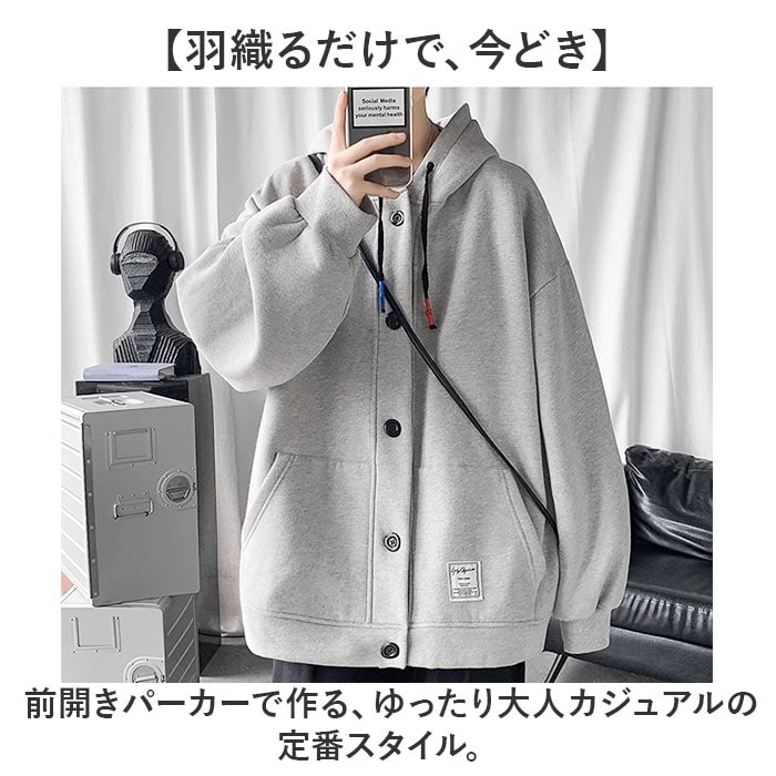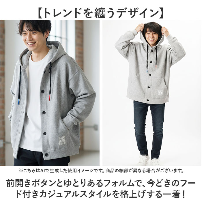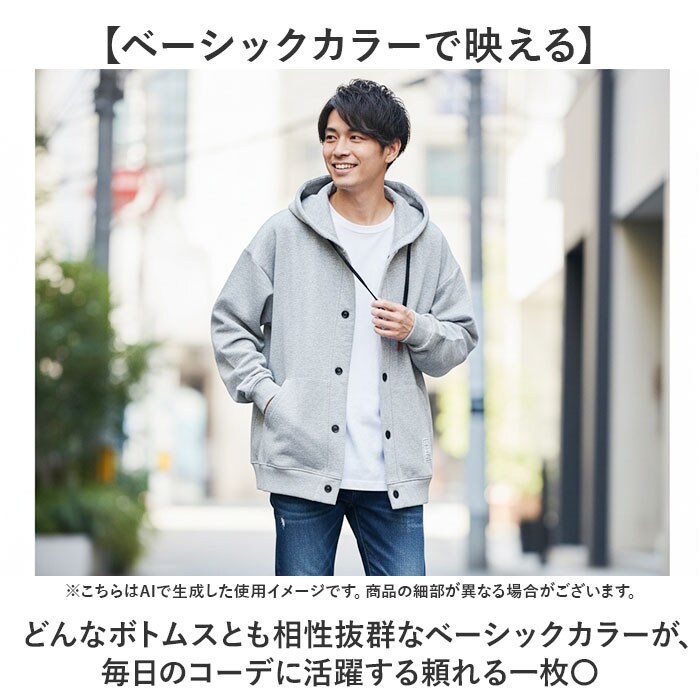 | 商品説明 | 【羽織るだけで、今どき】前開きパーカーで作る、ゆったり大人カジュアルの定番スタイル。【羽織り1枚で決まる】上からさらっと羽織るだけでコーデが完成する、万能な前開きパーカースタイル。【ゆったり感で体型カバー】ビッグシルエットがインナーのボリュームをさりげなくカバーし、すっきり見せるシルエット♪【トレンドを纏うデザイン】前開きボタンとゆとりあるフォルムで、今どきのフード付きカジュアルスタイルを格上げする一着!【ベーシックカラーで映える】どんなボトムスとも相性抜群なベーシックカラーが、毎日のコーデに活躍する頼れる一枚〇 |