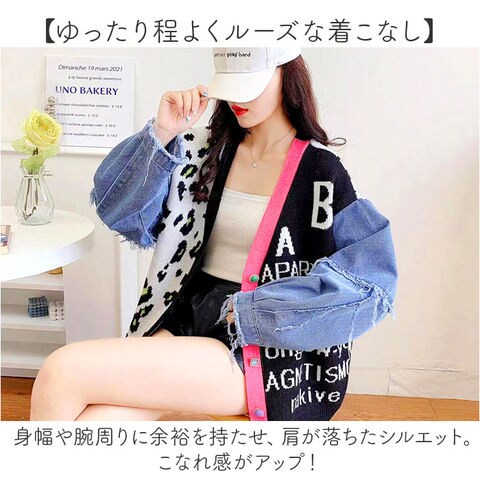 | 商品説明 | 【個性の光るスタイルが完成♪】街中でも目を惹く、ポップな仕上がり。「デニム&ニット カーディガン」。【デニムとニットのミックスデザイン】カジュアルの定番デニムと、アニマル柄やロゴをプリントしたニットの組み合わせがおしゃれ☆【いつものコーデにプラスワン】カットソーなどの上に羽織るだけ!ボタンを留めれば、Vネックトップス風に。【ゆったり程よくルーズな着こなし】身幅や腕周りに余裕を持たせ、肩が落ちたシルエット。こなれ感がアップ!【お肌に優しくストレスフリー】チクチク感のない柔らかな素材。デリケートなお肌に触れても安心◎【周りと差をつけたコーデを楽しもう】カタチの異なる、可愛らしいボタンもアクセント♪お気に入りのカラーをチョイス。 |