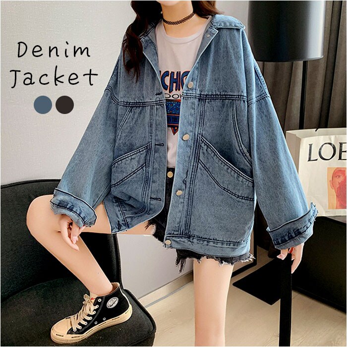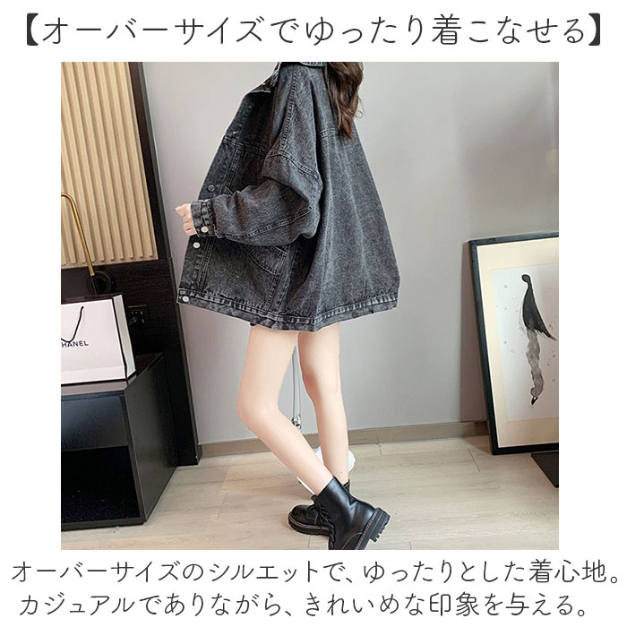 デニムジャケット アウター 大きいポケット【デニムブラックグレー】【ワンサイズ(L)】