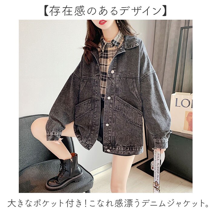 デニムジャケット アウター 大きいポケット【デニムブラックグレー】【ワンサイズ(L)】のレビュー