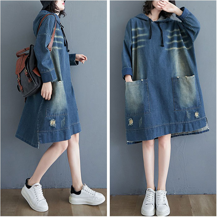 デニム パーカー ワンピース【デニム】【XLサイズ】