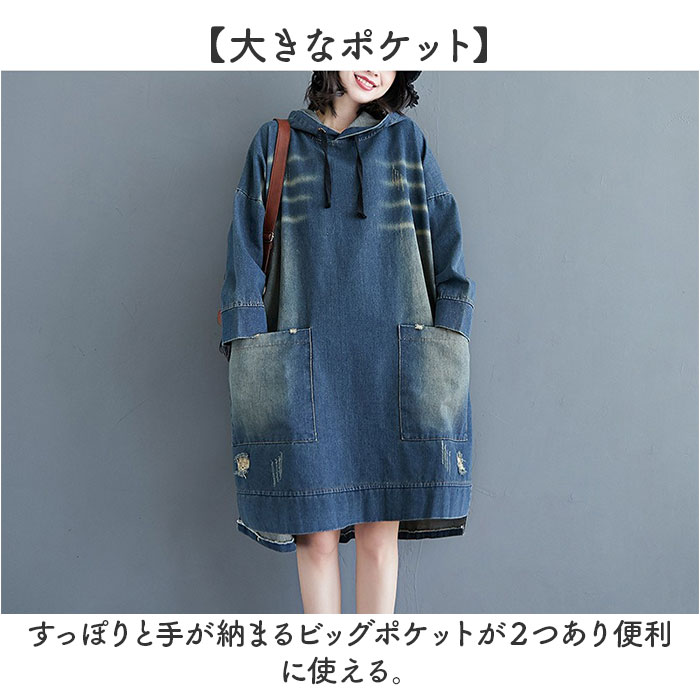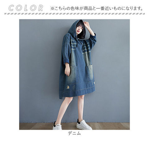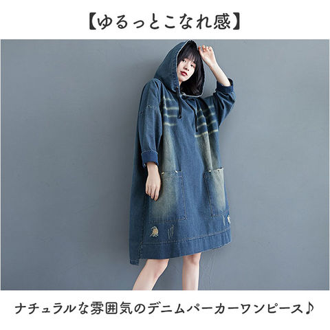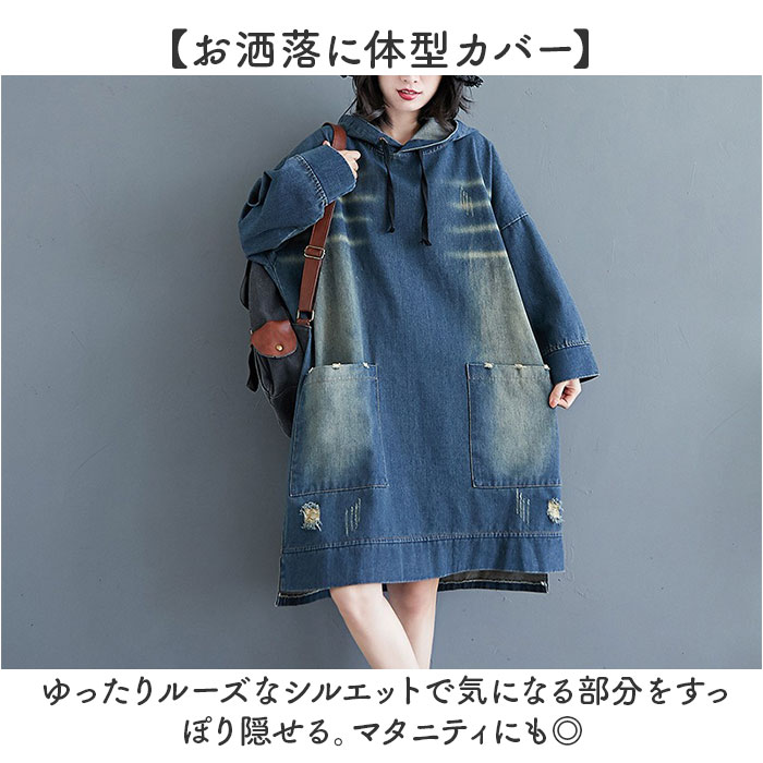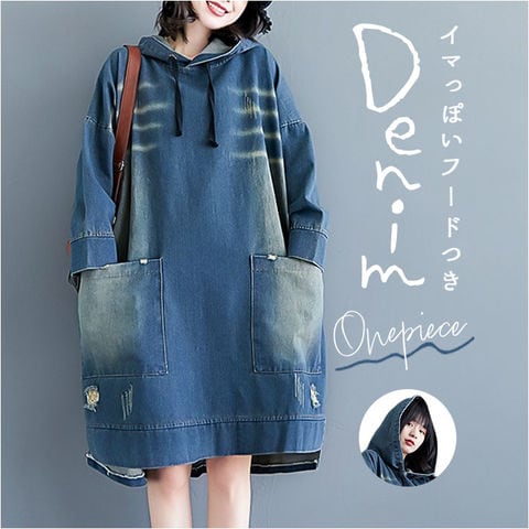 | 商品説明 | 【ゆるっとこなれ感】ナチュラルな雰囲気のデニムパーカーワンピース♪【お洒落に体型カバー】 ゆったりルーズなシルエットで気になる部分をすっぽり隠せる。マタニティにも◎【ダメージデザイン】 ヴィンテージ風のダメージ加工デニムがお洒落感をアップ!【ロングシーズン活躍】 程よい厚みのコットンデニムで春・秋・冬と長く着回せる○ |