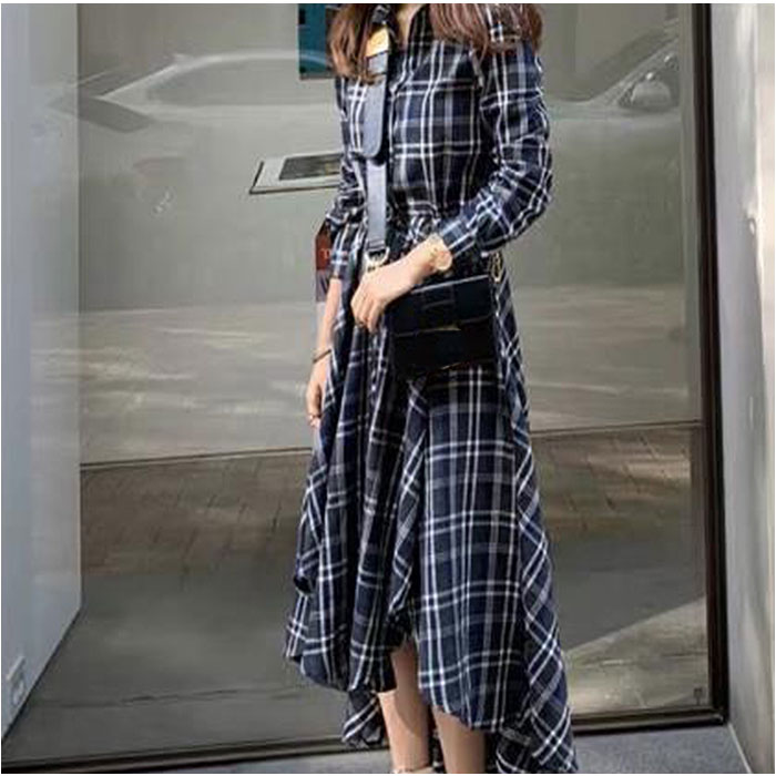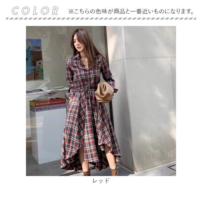 商品名シャツワンピース フィッシュテール チェック柄