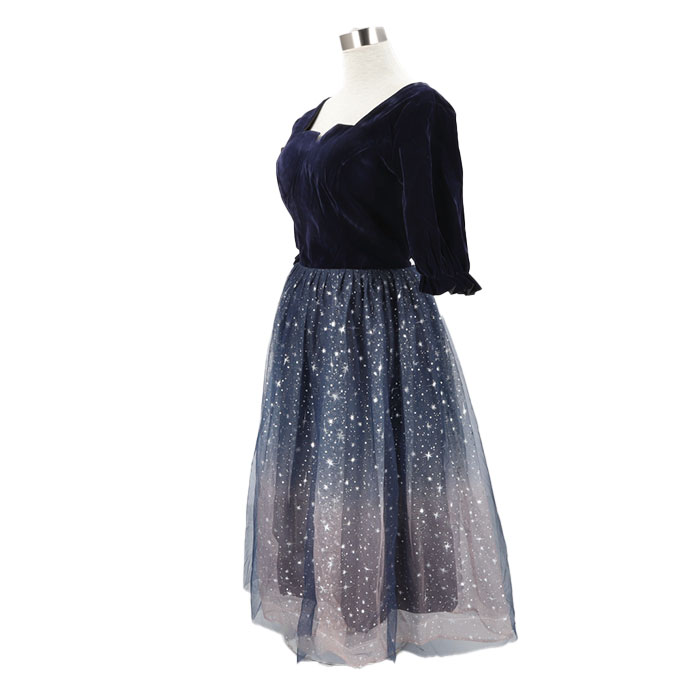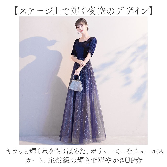 | 商品説明 | 【微光沢ベロア生地がおしゃれ♪】星空のチュールスカートでふわっと華やかに☆「パーティドレス カクテルドレス」が登場。【クラシカルな印象のベロア仕上げ】微光沢があり、思わず触れたくなるようなベロア生地を採用。気品のあるクラシカルな印象に♪【ステージ上で輝く夜空のデザイン】キラッと輝く星をちりばめた、ボリューミーなチュールスカート。主役級の輝きで華やかさUP☆【体型カバーもトレンドも叶う♪】ハイウエスト切替のチュールスカートは、体型カバーも今っぽさもどっちも取りの嬉しい作り。【甘さをセーブするスクエアネック】美デコルテとシャープな印象に仕上げる、スクエアネック。甘すぎない大人カラーも魅力。【そのまま着られるパットつきタイプ】下着の心配いらずのパットつきタイプ。お着替えもラクチンで、締め付け感が少ないのもGOOD。【後ろ姿もぬかりない!】後姿だって気を抜かない、編み上げリボンを採用。派手すぎない、ほどよいアクセントに。【選べる丈感2タイプ☆】ミモレ丈とロング丈の2タイプをご用意。シーンやお好みに合わせてチョイスできる。※手洗いもしくは、ネット使用の洗濯機洗い(ソフトコース)をお勧めします。 |