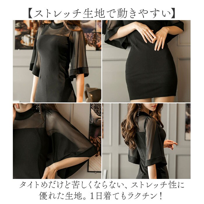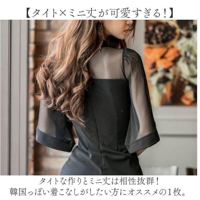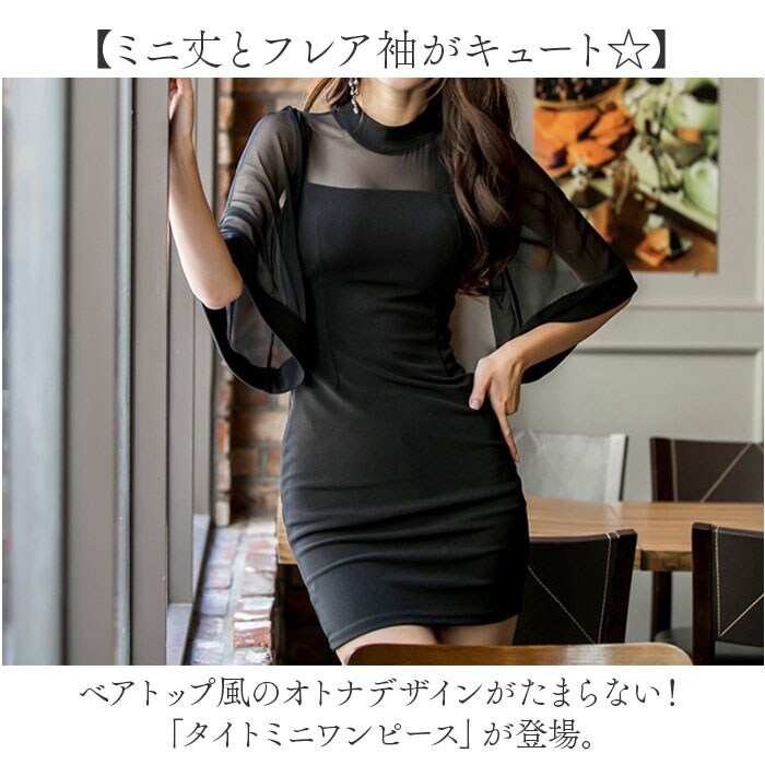 | 商品説明 | 【ミニ丈とフレア袖がキュート☆】ベアトップ風のオトナデザインがたまらない!「タイトミニワンピース」が登場。【シンプルだけどちゃんと映え♪】シンプルに見えて、たっぷりこなれ感!シースルー生地で、オールブラックでも重たくない◎【タイト×ミニ丈が可愛すぎる!】タイトな作りとミニ丈は相性抜群!韓国っぽい着こなしがしたい方にオススメの1枚。【露出をしすぎないヘルシースタイル】袖は長めの5分丈で、透け感のあるフレア仕様。ミニ丈とのバランスが良く、ヘルシーな印象。【オトナの魅力を存分に♪】ベアトップ風のデザインで、オトナっぽさを演出。パーティーなど、おしゃれしたい日に☆【ストレッチ生地で動きやすい】タイトめだけど苦しくならない、ストレッチ性に優れた生地。1日着てもラクチン! |