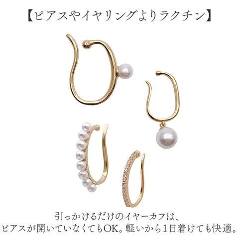 | 商品説明 | 【気分に合わせて重ねづけ☆】いろんな表情が楽しめる華やかなアイテム。「イヤーカフ 4点セット」が登場。【組み合わせ自由の4点セット!】イミテーションパールを使ったそれぞれ可愛いデザインのイヤーカフ。単品も重ねづけもGOOD♪【その日の気分やコーデに合わせて】どれを組み合わせてもおしゃれに仕上がる。その日の気分に合わせていろんな表情を楽しんで☆【ピアスやイヤリングよりラクチン】引っかけるだけのイヤーカフは、ピアスが開いていなくてもOK。軽いから1日着けても快適。【毎日着けられるデザインが魅力】華やかもカジュアルもシンプルも叶うデザインなので、通勤通学、お呼ばれ、普段使い全て◎ |