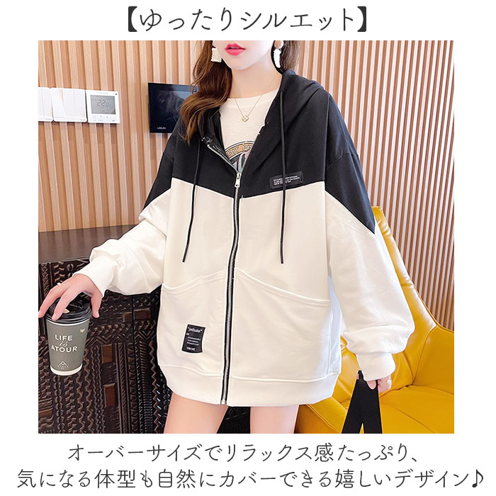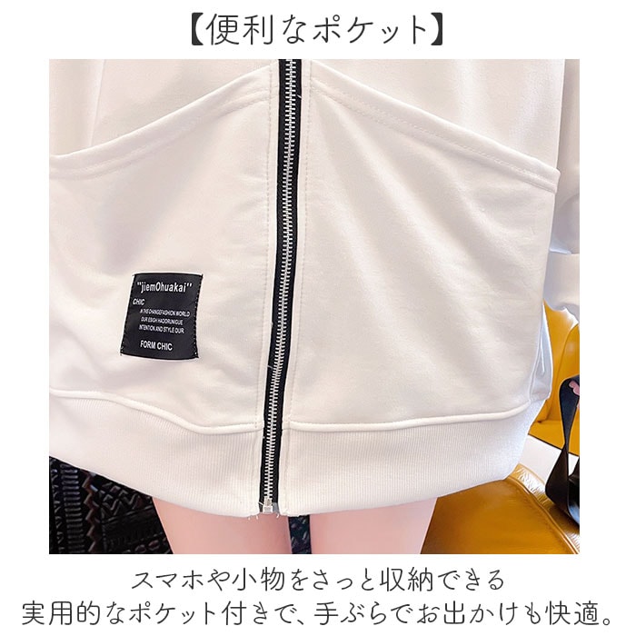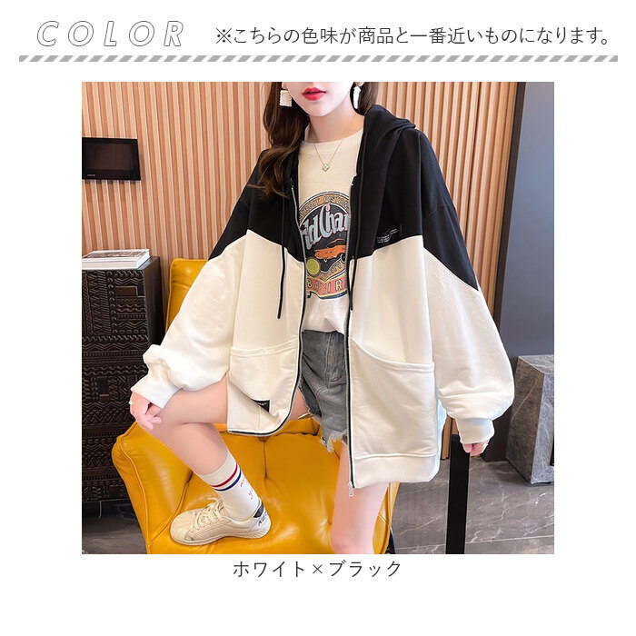 ジップアップパーカー アウター【ホワイト×ブラック】【XLサイズ】