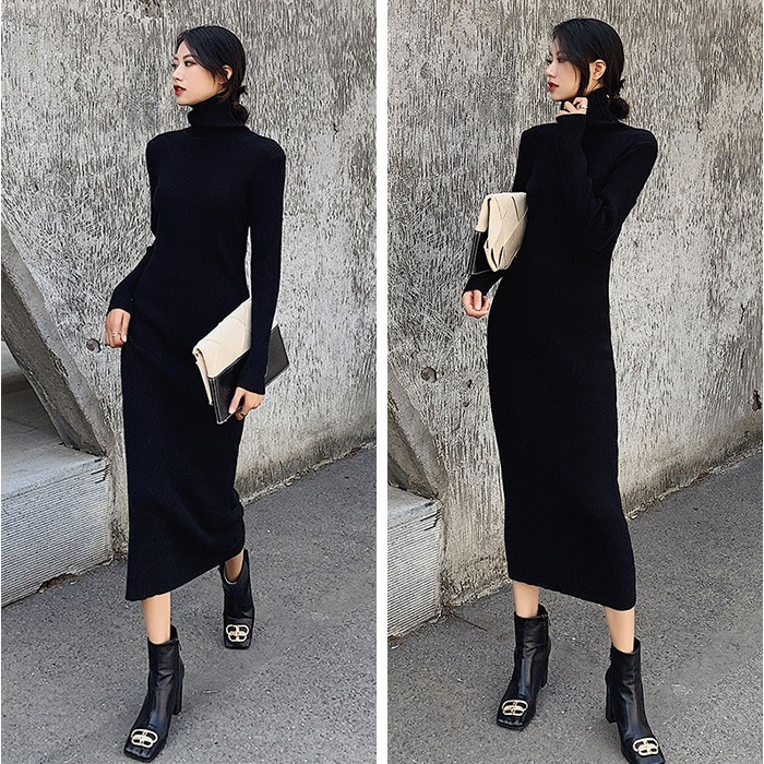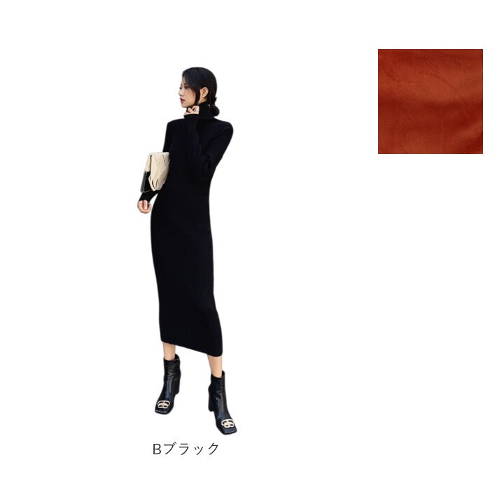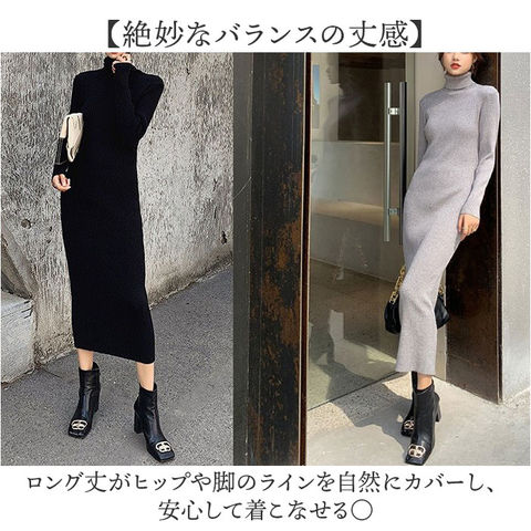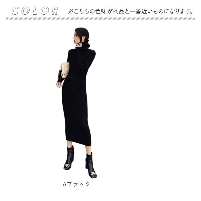 ニットワンピース タイト リブニット【Bブラック】【Lサイズ】