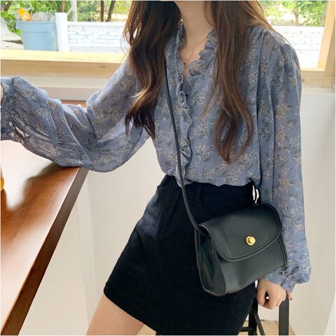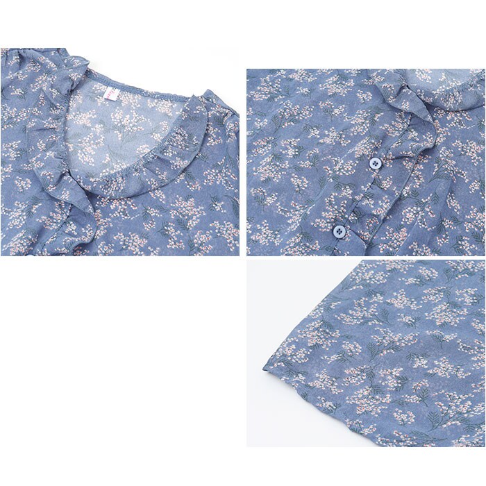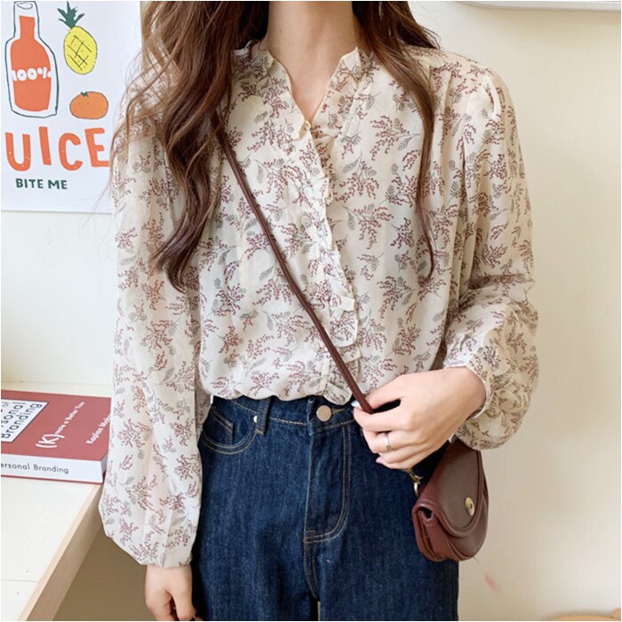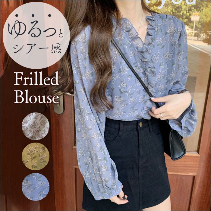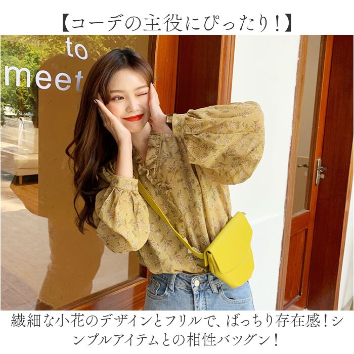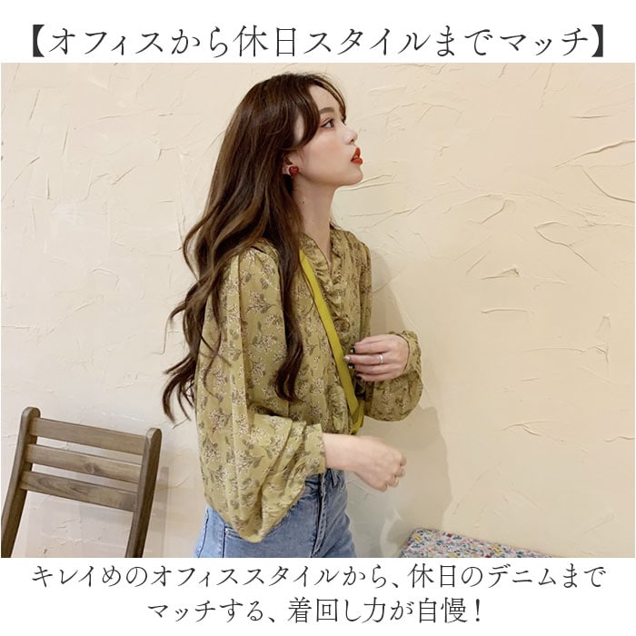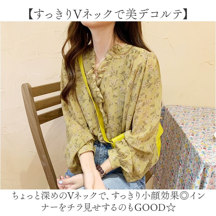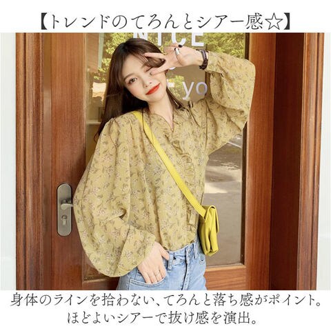 フリルブラウス 花柄 【イエロー】【Sサイズ】