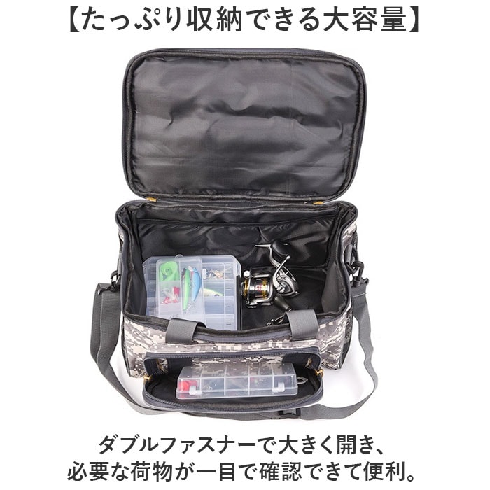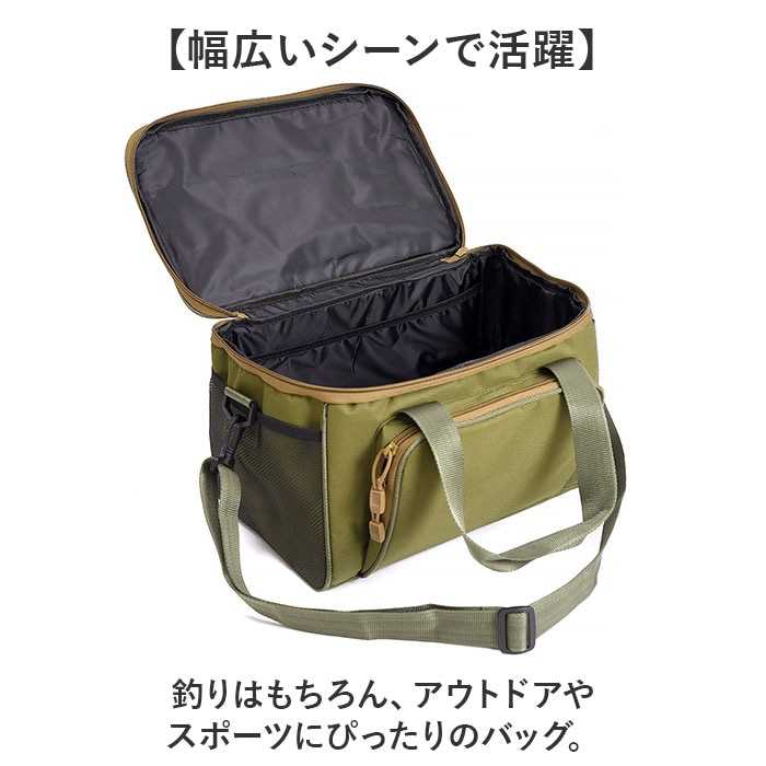 | 商品説明 | 【釣りやキャンプなどアウトドアに】釣りやアウトドアといったレジャーシーンに最適なフィッシングバッグ。【たっぷり収納できる大容量】ダブルファスナーで大きく開き、必要な荷物が一目で確認できて便利。【便利なポケット付き】フロントには大きめのファスナーポケット、メインルームにも小物収納用のフリーポケット付き。【使い分けできる2WAY仕様】肩掛けも手持ちもできるからシーンやスタイルに合わせて好みの持ち方を楽しめる。【幅広いシーンで活躍】釣りはもちろん、アウトドアやスポーツにぴったりのバッグ。【折り畳めて持ち運びもスマート】コンパクトに折り畳めるので、かさばらずに持ち運びが可能、旅先やアウトドアでも活躍するアイテム。 |