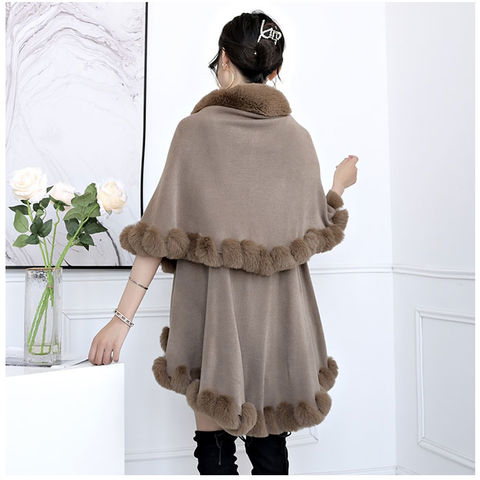 ファーポンチョ おしゃれ mmfpch927b【コーヒー】