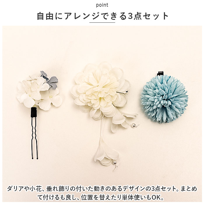 | 商品説明 | ヘアアレンジのワンポイントに♪華やかに彩る、フラワーモチーフの髪飾りが新登場。【ナチュラル可愛い仕上がり】和装に可愛さをプラスする、立体感のあるフラワーデザイン。温かみのある色使いで、上品な印象に。【自由にアレンジできる3点セット】ダリアや小花、垂れ飾りの付いた動きのあるデザインの3点セット。まとめて付けるも良し、位置を替えたり単体使いもOK。【どなたでも簡単セット】ダリアと垂れ飾り付きはクリップ、小花はUピン仕様。どちらも手軽にセットできるのが嬉しい!クリップタイプはショートヘアにも☆【様々なシーンで】お祭りで着る浴衣に合わせたり、七五三や成人式の着物、卒業式の袴にもマッチ。 |