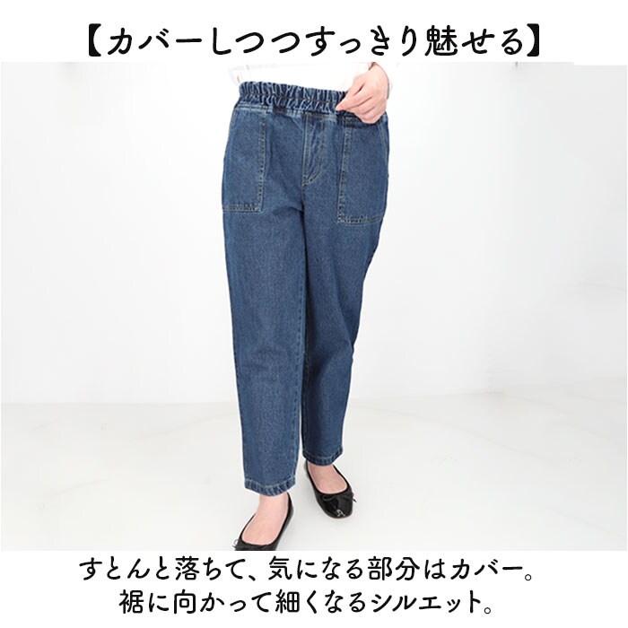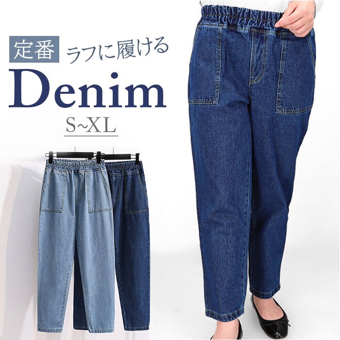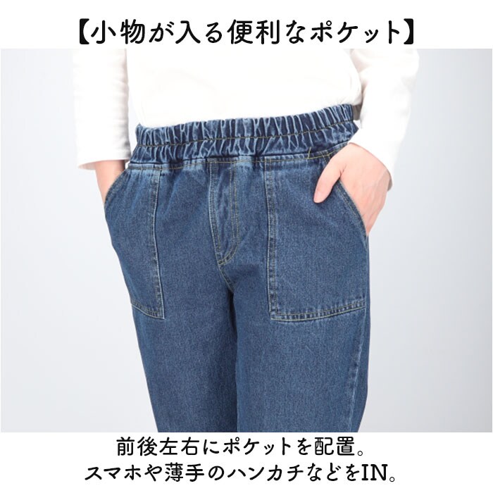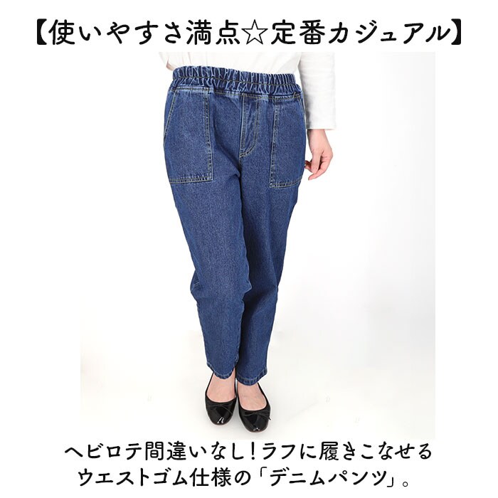 | 商品説明 | 【使いやすさ満点☆定番カジュアル】ヘビロテ間違いなし!ラフに履きこなせるウエストゴム仕様の「デニムパンツ」。【季節や流行りを気にせず長く愛用◎】どんなトップスとも相性が良く、シーズンレスで活躍。トレンドに左右されないのもポイント。【自分サイズに心地よくフィット】締め付けのないウエストゴム仕様。ボタンやファスナーがなく、着替えも手間取らない◎【カバーしつつすっきり魅せる】すとんと落ちて、気になる部分はカバー。裾に向かって細くなるシルエット。【小物が入る便利なポケット】前後左右にポケットを配置。スマホや薄手のハンカチなどをIN。 |