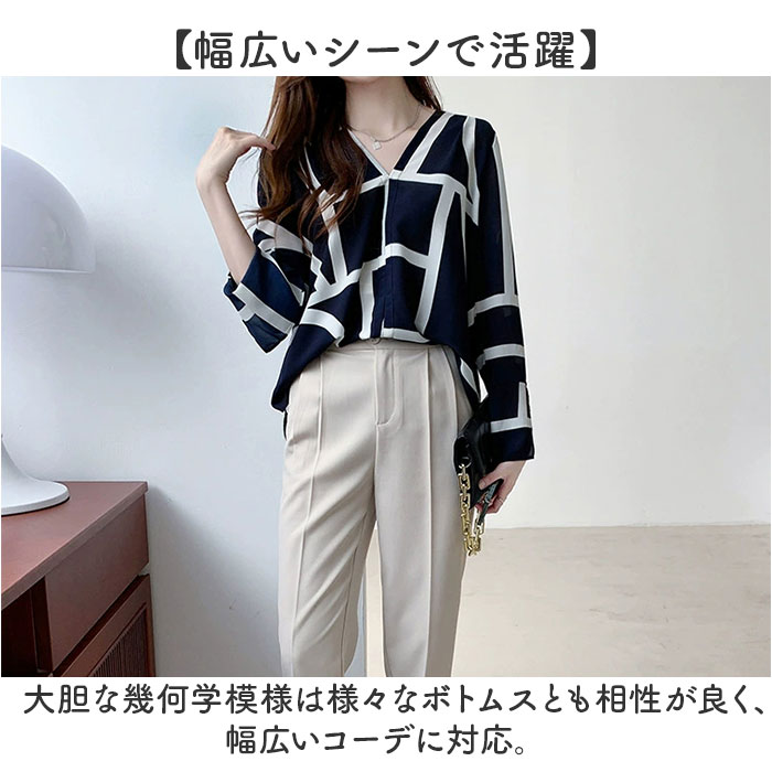 | 商品説明 | 【クラシカルな上品ブラウス】・ON・OFF問わずマルチに活躍する「シャツブラウス クラシカル Vネック」が登場。【Vネックで大人っぽさ〇】胸元が程よく開いたVネック。デコルテをキレイに魅せ大人の雰囲気を演出。【ロングシーズン活躍!】薄手でサラッとした生地感で、着心地軽やか◎袖のスリットがアクセント。(※)やや透け感があるのでインナーの着用をおすすめします。【ゆったり感のあるシルエット】身幅、肩幅にゆとりを持たせたオーバーサイズシルエットでこなれ感をプラス。【幅広いシーンで活躍】大胆な幾何学模様は様々なボトムスとも相性が良く、幅広いコーデに対応。 |