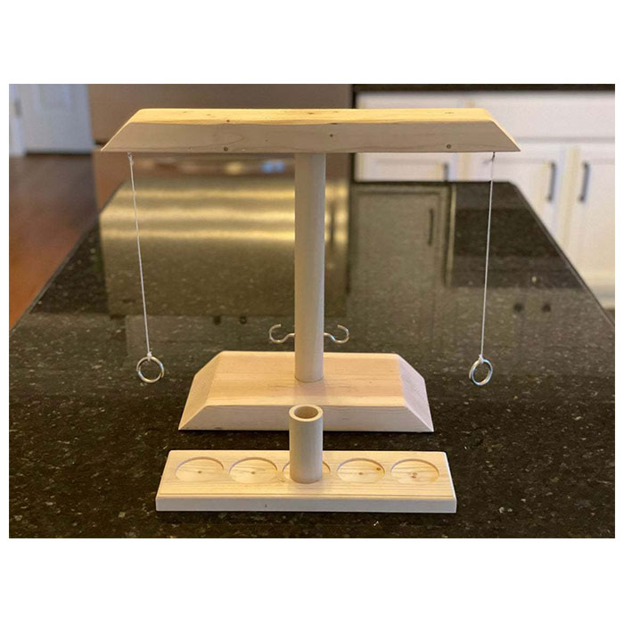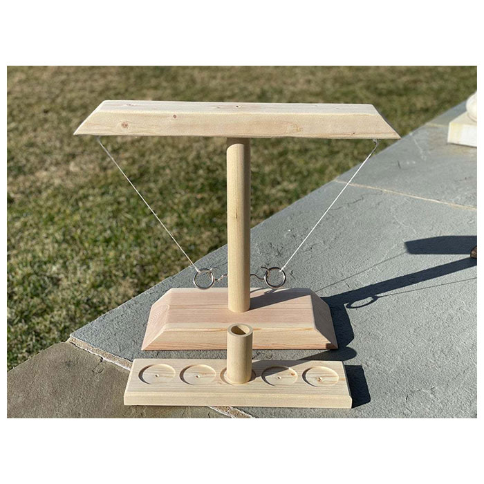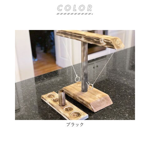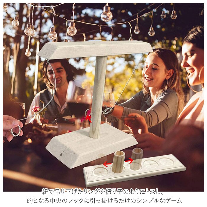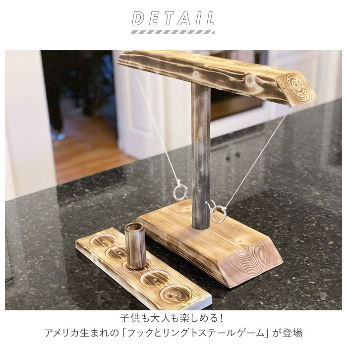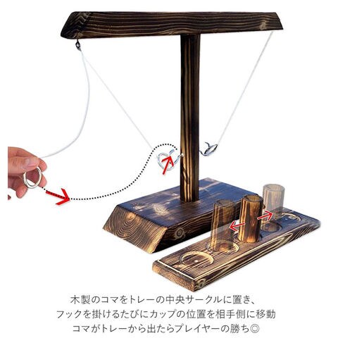 | 商品説明 | 子供も大人も楽しめる!アメリカ生まれの「フックとリングトステールゲーム」が登場。紐で吊り下げたリングを振り子のようにトスし、的となる中央のフックに引っ掛けるだけのシンプルなゲーム。木製のコマをトレーの中央サークルに置き、フックを掛けるたびにカップの位置を相手側に移動。コマがトレーから出たらプレイヤーの勝ち◎パーツは分解できるので、持ち運びもラクチン。キャンプやパーティーで盛り上がること間違いなし♪・【セット内容】本体、リング×2、フック(的)×2、紐を吊るすフック×2、紐×2、トレー、コマ |