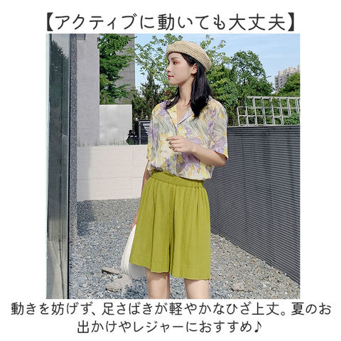 | 商品説明 | 【ゆったりリラックス!快適な着心地】ラフに着こなせて、色んなシーンで活躍。レディース用「ハーフパンツ」。【アクティブに動いても大丈夫】動きを妨げず、足さばきが軽やかなひざ上丈。夏のお出かけやレジャーにおすすめ♪【サッと履けてルームウェアとしても】お家時間をラクに過ごせて、家事を頑張る日ものんびりタイムにも。パジャマ代わりにも最適。【締め付け感がなくストレスフリー】自分サイズにフィットする、ウエストゴム仕様。着替えもラクチン。【さらりと涼しげなプリーツデザイン】型崩れしにくい、細かなプリーツ。サラッとした生地感で、体に負担をかけずに着用OK。【小物を入れておけるサイドポケット】ちょこっと小物を収納できるポケットを、左右に配置。ちょっとそこまでは手ぶらで♪【お気に入りを選べるカラー】トップスに合わせやすい、落ち着きのあるカラーをラインナップ。洗い替え用に、色違い揃えも! |