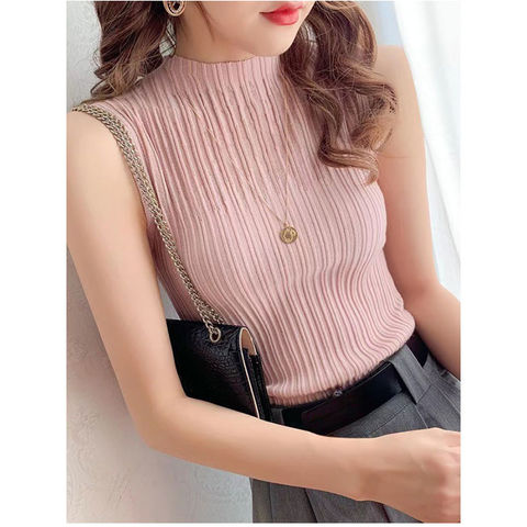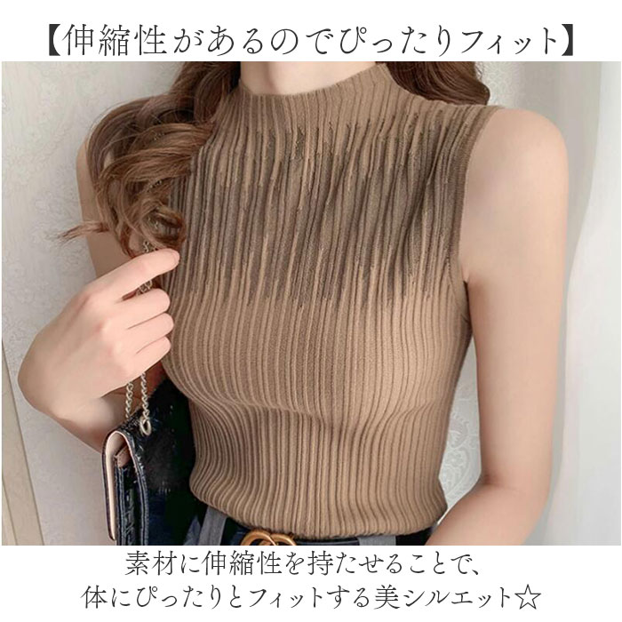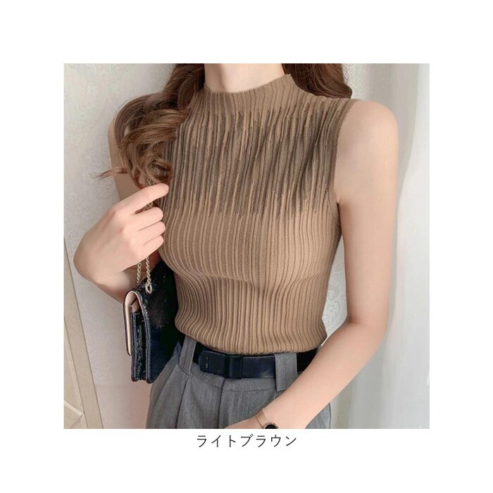 ノースリーブ ハイネック リブ mmhns220f【ライトブラウン】