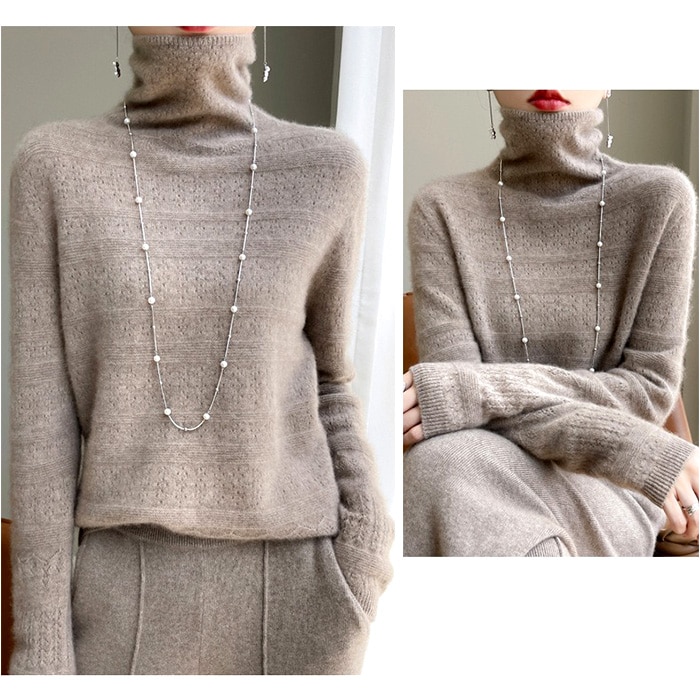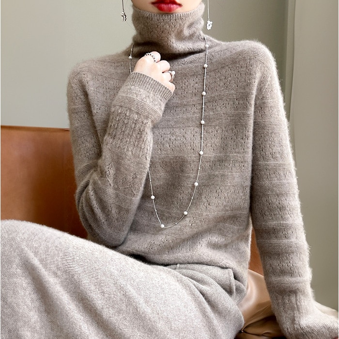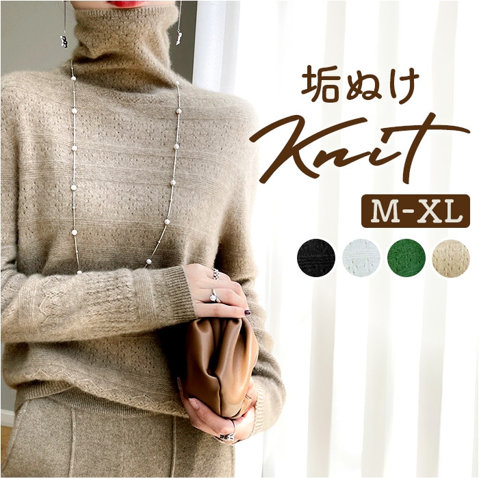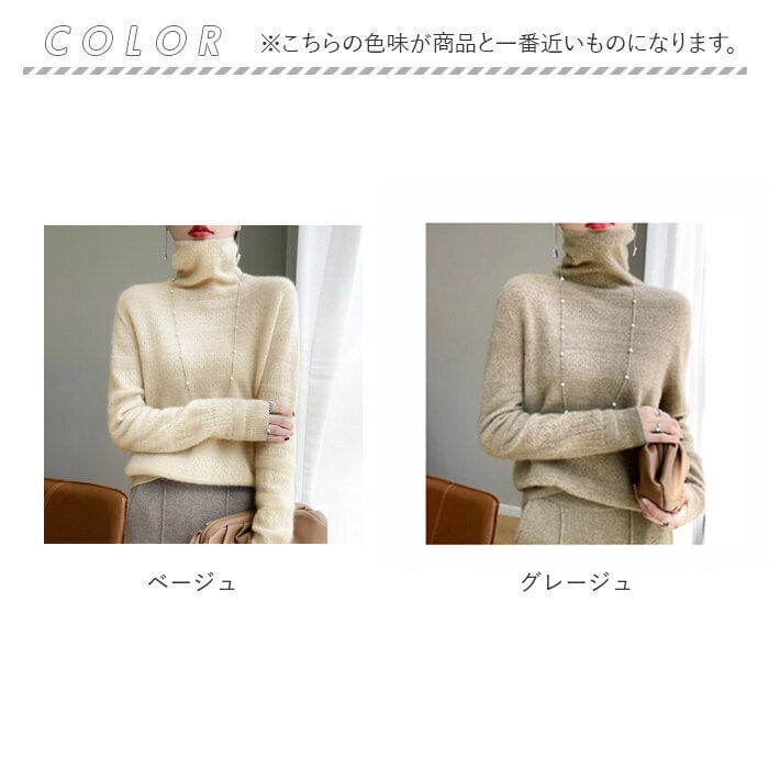ハイネックニットセーター トップス【グレージュ】【Mサイズ】