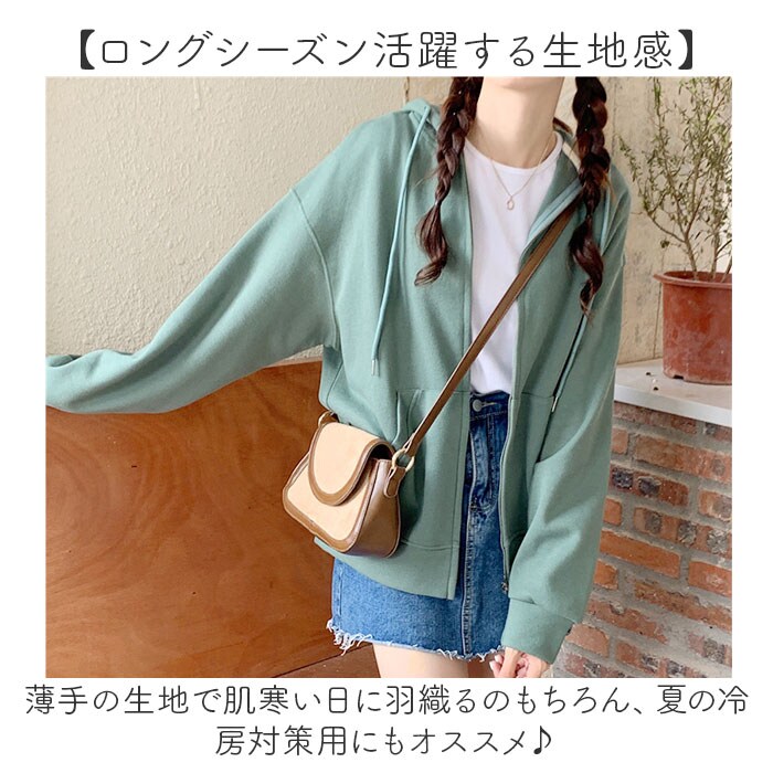 | 商品説明 | 【シンプルだから着回し力抜群】シンプルなデザインが一番嬉しい♪1つあると便利なジップアップパーカーが登場。【ロングシーズン活躍する生地感】薄手の生地で肌寒い日に羽織るのもちろん、夏の冷房対策用にもオススメ♪【シンプルだけどオシャレ】ダボっとゆったりめのシルエットが今っぽい♪着るだけでこなれ感が出る仕上がり。【コーデが明るくなるカラーも】ベーシックなカラーはもちろん、コーデの差し色になるカラーもご用意。色違いで揃えるのも◎【コーデに取り入れやすい】シンプルなデザインだから様々なコーデやシーン取り入れやすいのも嬉しいポイント。【サッと被れるフード付き】寒い時や風が強い日も安心なフード付き。【便利なポケット付き】スマホやハンカチなどちょっとした小物を入れるのに便利なポケット付き。 |
