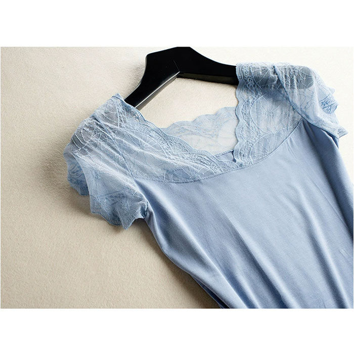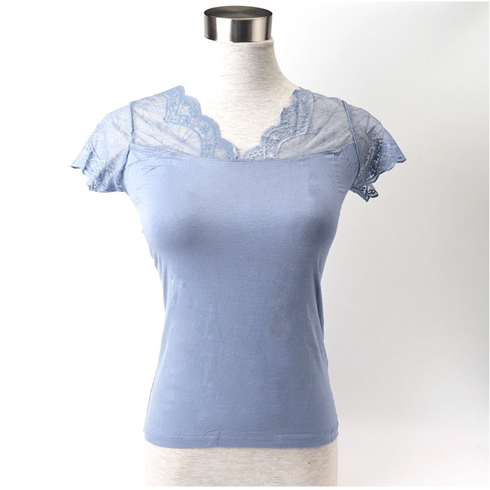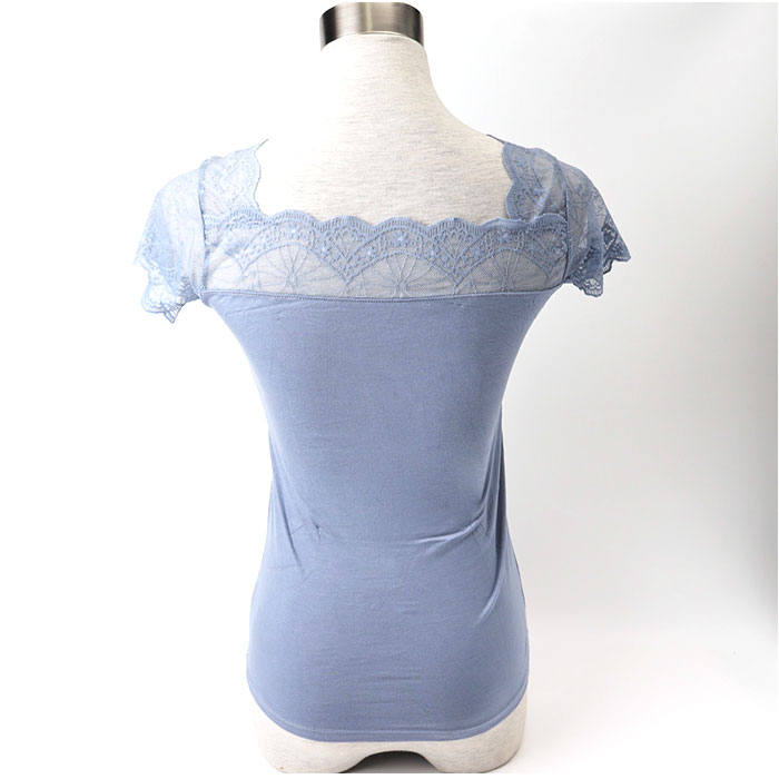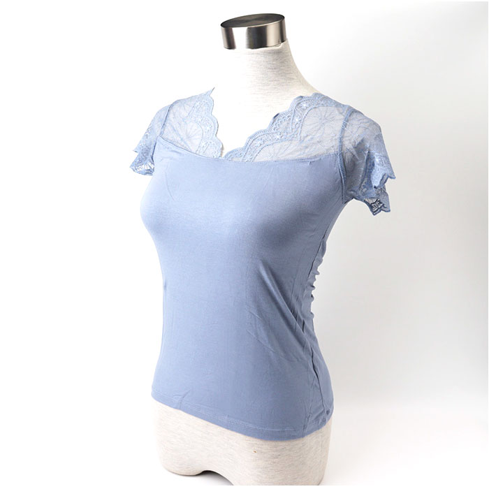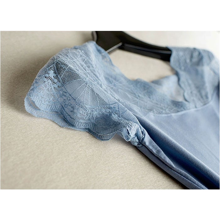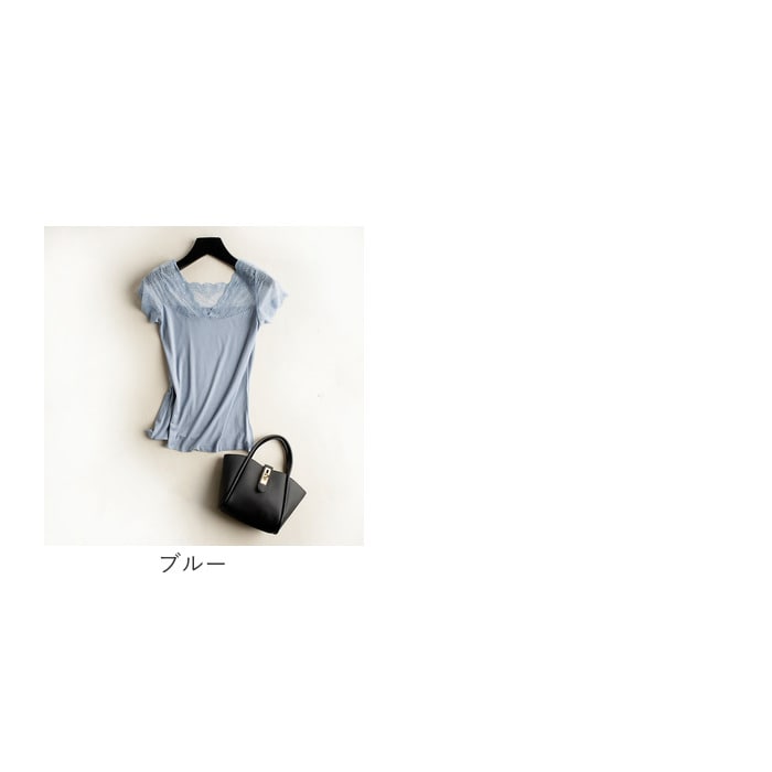 フレンチスリーブインナー Vネック レース【ブルー】
