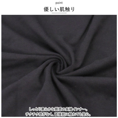 商品説明寒い季節もあたたかく♪こっそり防寒できるインナーが新登場。【優しい肌触り】しっとり柔らかな質感の長袖インナー。チクチク感がなく、直接肌に触れても安心。【ストレスフリーな着心地】ストレッチ性があるから、体の動きを妨げない♪薄手の生地感で、心地よくフィット。【クルーネックタイプ】首元が詰まりすぎないクルーネックデザイン。ニットやトレーナーの下に忍ばせやすい万能アイテム。【選べるカラー】色違いで揃えたくなるカラーバリエーション☆デイリー使いに最適なシンプルデザイン。