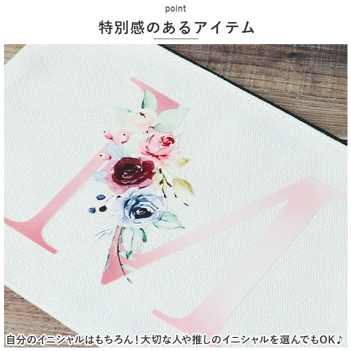 | 商品説明 | 存在感のあるイニシャルデザイン♪大人女子にぴったりなポーチが新登場。【可愛らしい仕上がり】ナチュラルなホワイトカラーのコットン生地を使用。花柄と一緒にプリントされた、イニシャルデザインがアクセント。【ガバっと開くファスナー開口】開口部は開閉がスムーズなファスナー式。大きく開いて中身を確認しやすく、ファスナーを閉めればこぼれ落ちをガード。【コスメやエチケットグッズの収納に】サッとバッグに忍ばせやすく、持ち歩きに便利なスリムタイプ。お直しコスメやエチケットグッズなど、細々した物をまとめてIN。お出かけや旅行に持っていく、小物の仕分けに最適。【特別感のあるアイテム】自分のイニシャルはもちろん!大切な人や推しのイニシャルを選んでもOK♪ |