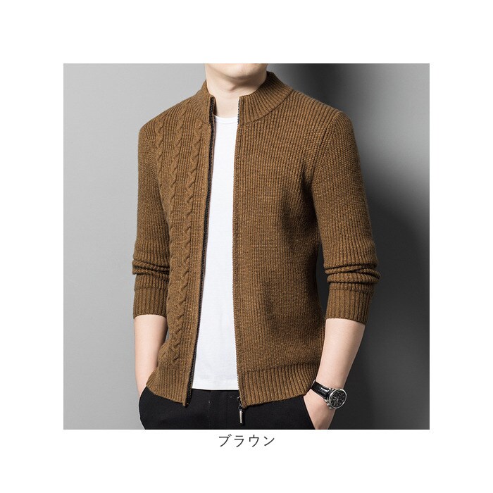 ジップ ニット メンズ アウター mmjn907ma【ブラウン】【Mサイズ】