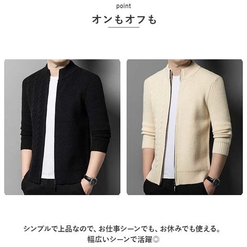 | 商品説明 | シンプルで着回し力バツグン!オンにもオフにも使える「メンズ ジップニットアウター」が登場。【シンプルニット】無地×ケーブル編みのシンプルニット。お洋服に合わせやすいので、ひとつあると嬉しい定番アイテム。【ジップアップ仕様】フロントはジップアップできるファスナー仕様。開けてカジュアルに、閉めて暖かく♪お好みでチョイス☆【オンもオフも】シンプルで上品なので、お仕事シーンでも、お休みでも使える。幅広いシーンで活躍◎【あったか快適】首元まであるあったか仕様で、寒い季節にぴったり◎ポリエステル素材を使用しているのでチクチクしにくく快適。【スリムシルエット】オフィスでも使える、すっきりとしたスリムなシルエット。アウターとして着るのはもちろん、コートの下に着ても着ぶくれしにくい◎【選べるカラー】ベーシックカラーをご用意。どの色も幅広いコーデにマッチ。 |