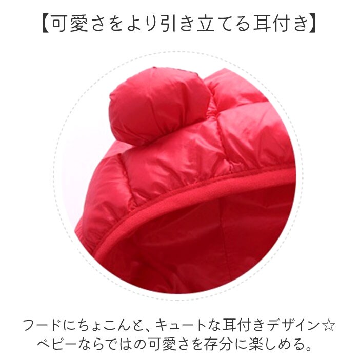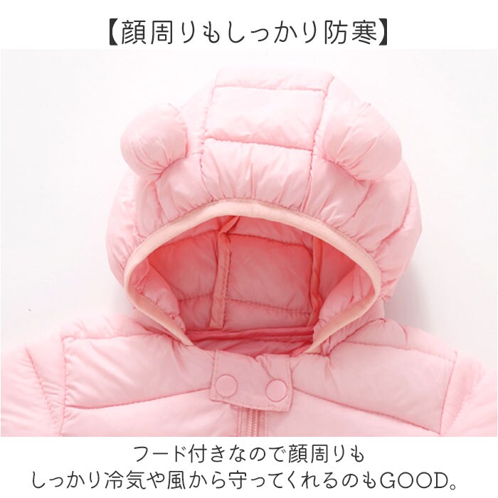 | 商品説明 | 【寒い日のお出かけに最適】寒い日の公園遊びやお出かけも暖かい♪ベビー ジャンプスーツが登場。【防寒できる中綿入り】中綿入りであったか♪寒い季節のアウターとして、防寒対策にぴったり。【顔周りもしっかり防寒】フード付きなので顔周りもしっかり冷気や風から守ってくれるのもGOOD。【可愛さをより引き立てる耳付き】フードにちょこんと、キュートな耳付きデザイン☆ベビーならではの可愛さを存分に楽しめる。【シンプルなワンカラーデザイン】ファスナーの色も生地と統一したワンカラー仕様。無地デザインでシンプルなおしゃれさを追求。【着脱がスムーズ】襟元から足首までのファスナーを搭載。ガバッと大きく開くからお着替えやおむつ替えもスムーズに!【動きやすい軽さ】大好きな外遊びも邪魔しない軽さも嬉しいポイント。赤ちゃんでも負担にならない軽量素材。【ギフトにもオススメのアイテム】出産祝いやお誕生日のギフトにも喜ばれる!みんなに好印象のシンプルデザインがGOOD! |