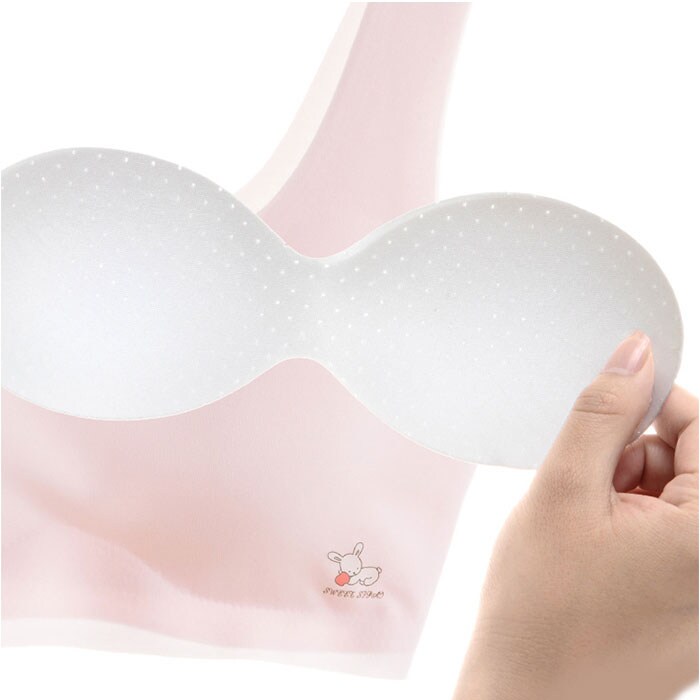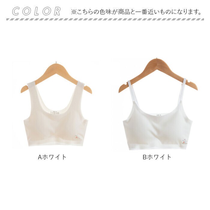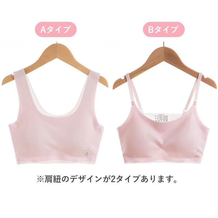 | 商品説明 | 【ノンワイヤーで苦しくない♪】お洋服に響きにくいから、違和感少なくつけられる!キッズスポーツブラ シームレスが登場。【ノンワイヤーでストレスフリー♪】きつい、痛いがないノンワイヤー仕様。締め付け感が少ないので初めてのブラにもオススメ☆【シームレスタイプだから安心】縫い目を少なくデザインしているので、お洋服に響きにくい。体操着の下にも着やすい◎【キャミソールのような着心地】シンプルな肩紐、お肌に触れる面積が多めの作りなので、キャミソールのような感覚で着られる【動きを邪魔しないストレッチ性】スパンデックスを使用した伸びる生地。動きを邪魔しないからリラックス。スポーツシーンにも◎【取り外し可能のパッド】やわらかパッドはお好みで取り外し可能。お洗濯もラクチンで嬉しい!【ほっこりワンポイントとカラー】キュートなイラストをワンポイント♪優しいカラーバリエーションでほっこり可愛いインナー☆ |
