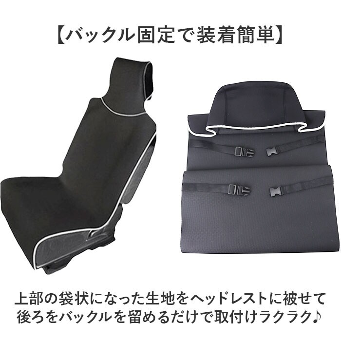 | 商品説明 | 【愛車のシートをしっかり守る】車の座席シートの傷や汚れが気になる方に!取り付けカンタン「自動車用シートカバー」。【バックル固定で装着簡単】上部の袋状になった生地をヘッドレストに被せて後ろをバックルを留めるだけで取付けラクラク♪【足元まで覆うデザイン】座面のフロント部分から下まで広い範囲をカバーし、靴についた泥汚れもガード〇【撥水加工】お子さまの食べこぼしなどもサッとひと拭きで安心。お子さまやペットとのお出掛けにも大活躍◎※完全防水ではありません。【滑り止め加工】裏面には細かい凹凸のある滑り止め加工を施し、乗り降り時のシートのズレを防止してくれる。【様々なシートに対応】多様な形状のシートにフィットするフリーサイズ設計だから軽自動車から普通車まで幅広く使える。※特殊なシート・ヘッドレストの場合は取り付け出来ない場合がございますので、サイズ等ご確認いただきご購入をお願い致します。【コンパクトに持ち運び】使用しないときはクルクル丸めてコンパクトに収納できるから便利。 |