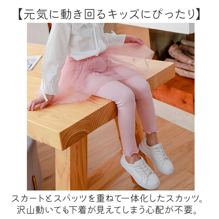 | 商品説明 | 【おしゃれに履けてデイリーに活躍】見た目も可愛らしく、動きやすさもバツグン!キッズ用「リボンチュールスカッツ」。【元気に動き回るキッズにぴったり】スカートとスパッツを重ねて一体化したスカッツ。沢山動いても下着が見えてしまう心配が不要。【ひと手間を省けて着替えもスムーズ】・2つのアイテムが一体になっているので、脱ぎ着もラクチン。身支度時間をちょこっと短縮。【締め付けがなくストレスフリー】自分サイズにフィットする、ウエストゴム仕様。スパッツはストレッチ性もあり、窮屈感ゼロ。【可愛いアクセントをプラス】ふんわりチュールにリボンデザイン♪スパッツの裾元のメロウ仕上げもポイント。【お気に入りを選べるカラー】ベーシックなブラックや、差し色をラインナップ。色違いで揃えて、使い分けもおすすめ。 |