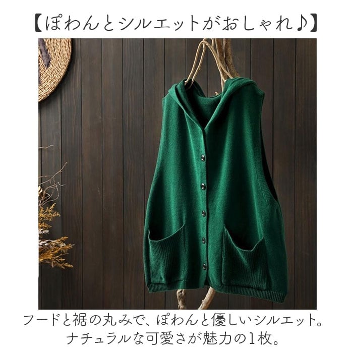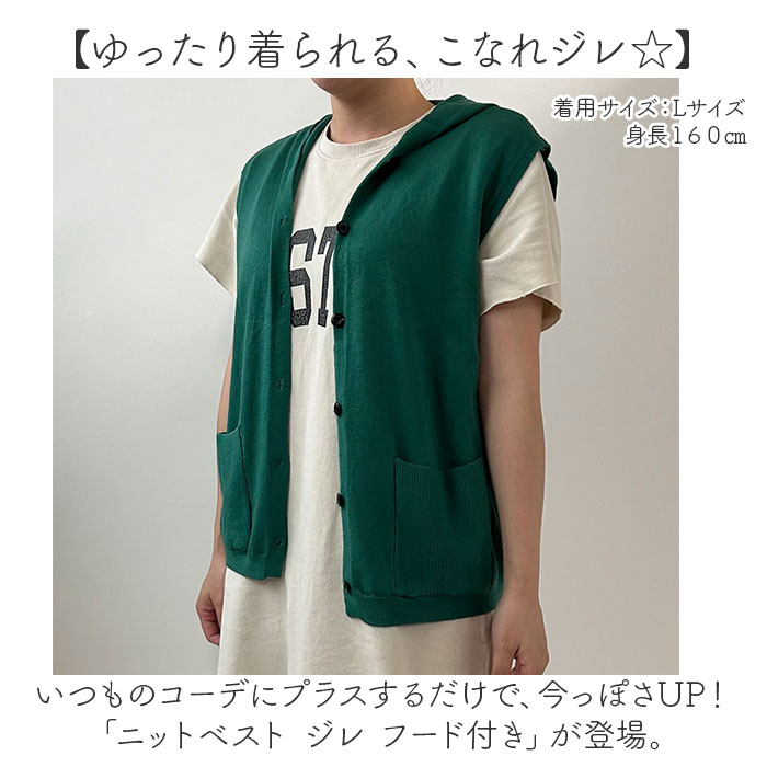 | 商品説明 | 【ゆったり着られる、こなれジレ☆】いつものコーデにプラスするだけで、今っぽさUP!「ニットベスト ジレ フード付き」が登場。【いつものコーデがランクアップ!】いつものコーデにプラスすれば、おしゃれさUP!パンツにもスカートにもマッチする着回し力。【ぽわんとシルエットがおしゃれ♪】フードと裾の丸みで、ぽわんと優しいシルエット。ナチュラルな可愛さが魅力の1枚。【体型カバー効果もばっちり】身体のラインを拾いにくく、気になる腰周りをカバーしてくれる。エイジレスで着用できる!【ロングシーズン活躍する薄手の生地】インナー次第で、ロングシーズン大活躍☆半袖、長袖、タンクトップなど着方はアナタ次第☆【リブポケットがアクセント☆】大きめのポケットにはリブ素材を使用。生地の違いがさりげないアクセントになり、おしゃれ!【カラーニットが映える!】選べるカラーは、ベーシックから差し色まで◎お好みのカラーをチョイスできる。 |