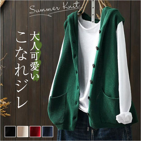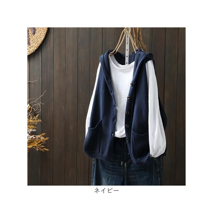 | 商品名 | ニットベスト ニットジレ フード付き mmknitv14h |