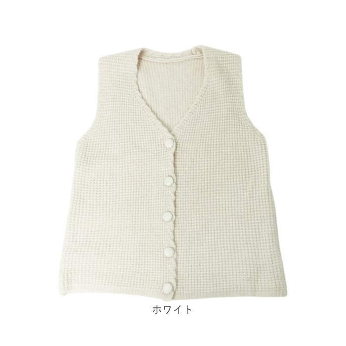 ニットベスト Vネック カジュアル【ホワイト】