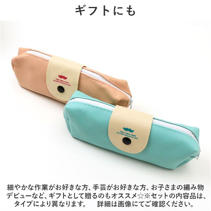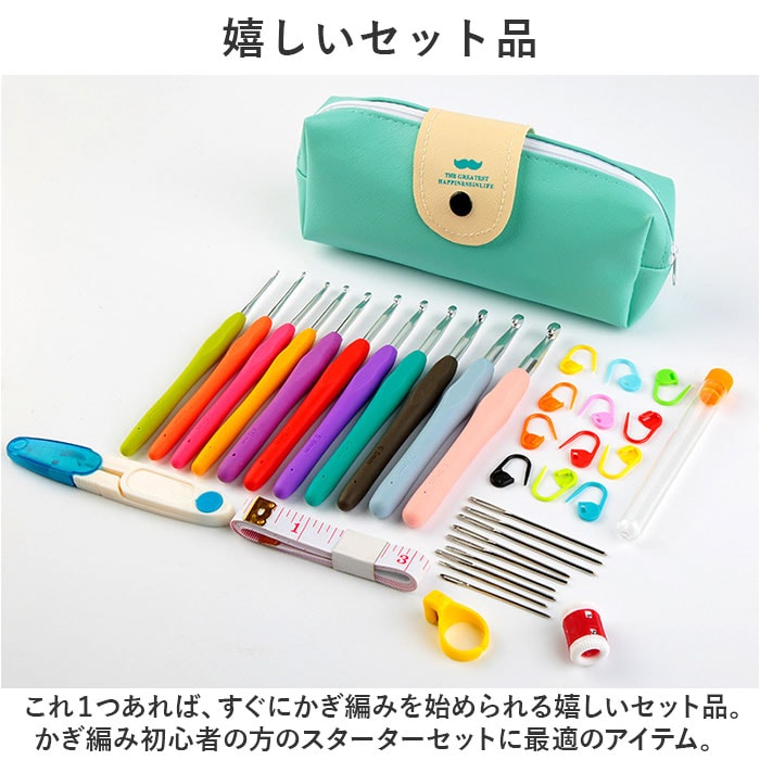 | 商品説明 | これ1つで、かぎ編みができちゃう☆初心者から上級者まで満足の かぎ針セット が登場。【嬉しいセット品】これ1つあれば、すぐにかぎ編みを始められる嬉しいセット品。かぎ編み初心者の方のスターターセットに最適のアイテム。【コンパクトに収納】専用のケースつきなので、細かいアイテムをひとまとめにして収納できる。コンパクトにまとめて持ち歩きにも便利☆【充実のセット内容】かぎ針、はさみ、段階リング、とじ針などが入った充実のセット内容。タイプ別で内容品が異なるので、画像をチェック!【お好みのタイプを選べる】タイプ別でセット内容が異なるので、自分のレベルに合わせてチョイスできる。初心者から上級者の方まで満足の内容。【可愛いさ満点】ペンケースのようなおしゃれで可愛いケース。それぞれのアイテムもカラフルでキュート☆手芸タイムがもっと楽しくなる♪【ギフトにも】細やかな作業がお好きな方、手芸がお好きな方、お子さまの編み物デビューなど、ギフトとして贈るのもオススメ☆※セットの内容品は、タイプにより異なります。 詳細は画像にてご確認ください。 |