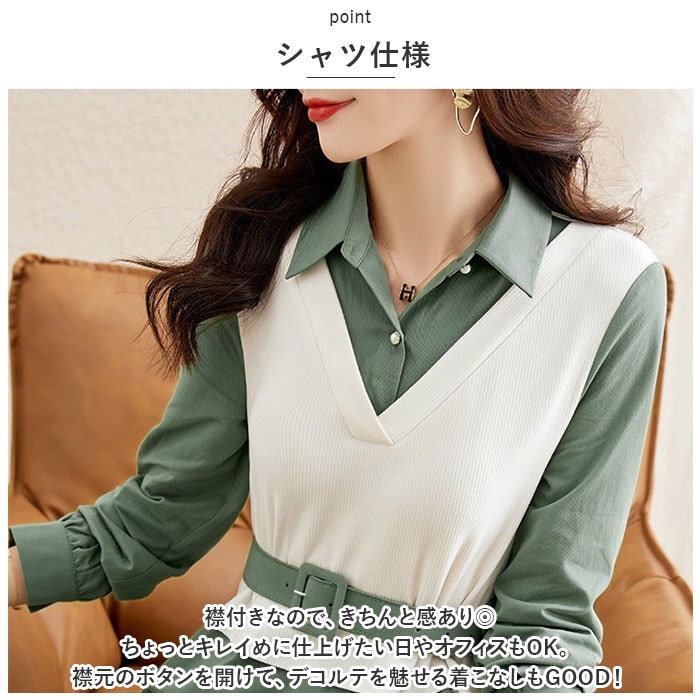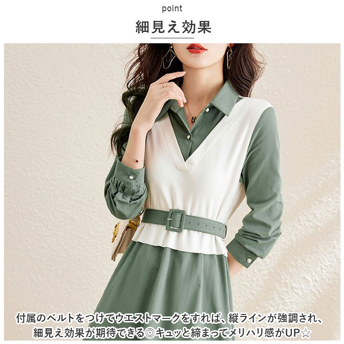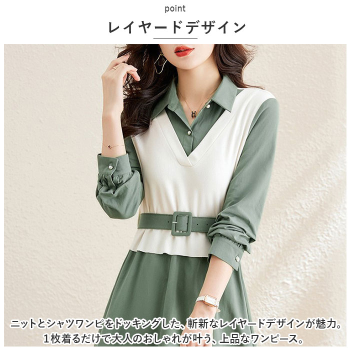 | 商品説明 | ・1枚着るだけで、レイヤードスタイルが完成!Aラインスカートがオトナ可愛い♪ワンピースが登場。【レイヤードデザイン】ニットとシャツワンピをドッキングした、斬新なレイヤードデザインが魅力。1枚着るだけで大人のおしゃれが叶う、上品なワンピース。【フレアスカート】優しく広がるフレアスカートは、Aラインシルエット。洗練された女性らしさを演出してくれる♪特別な日のコーデから普段使いまで、幅広く活躍。【細見え効果】付属のベルトをつけてウエストマークをすれば、縦ラインが強調され、細見え効果が期待できる◎キュッと締まってメリハリ感がUP☆【シャツ仕様】襟付きなので、きちんと感あり◎ちょっとキレイめに仕上げたい日やオフィスもOK。襟元のボタンを開けて、デコルテを魅せる着こなしもGOOD!【サイドファスナーつき】サイドにはファスナーを搭載。忙しい朝の着替えもスムーズにできる。着やすい工夫も嬉しいポイント。 |