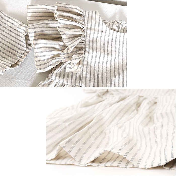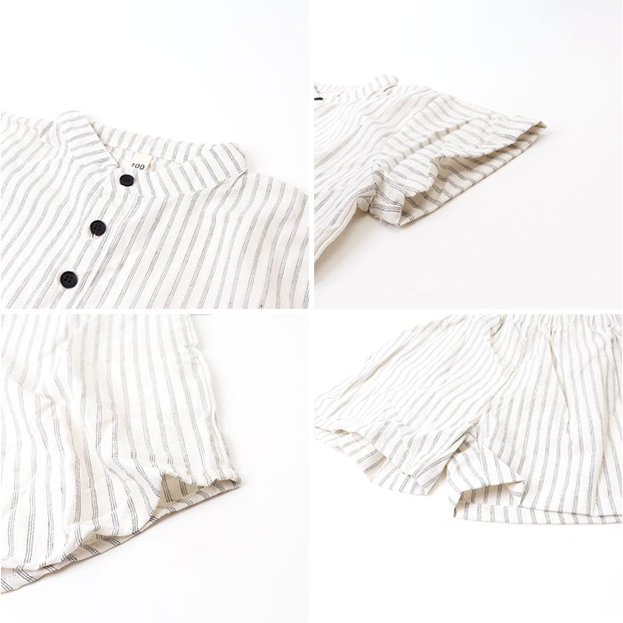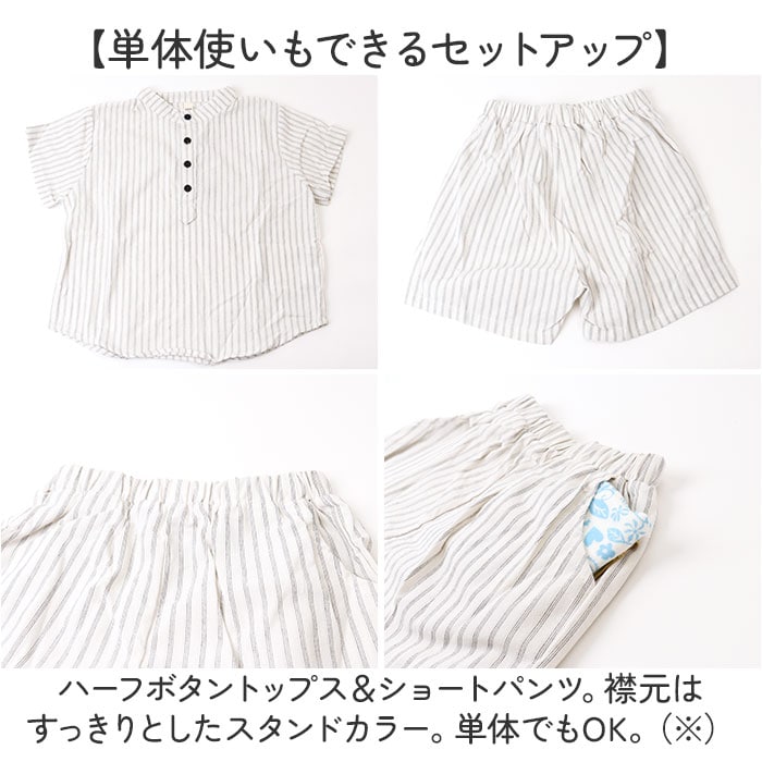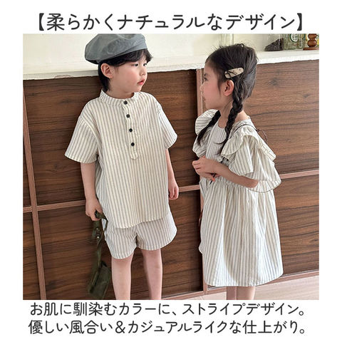 | 商品説明 | 【爽やかに可愛くお出かけ☆】コーデに悩まず、ラフに着こなせる!「キッズ用セットアップ&ワンピース」。【柔らかくナチュラルなデザイン】お肌に馴染むカラーに、ストライプデザイン。優しい風合い&カジュアルライクな仕上がり。【デリケートな肌にも安心の素材】サラッと軽やかなコットン素材。体に負担をかけず、汗ばむ季節もムレにくく快適◎【単体使いもできるセットアップ】ハーフボタントップス&ショートパンツ。襟元はすっきりとしたスタンドカラー。単体でもOK。(※)パンツはウエストゴム仕様、左右にポケット付きです。【キュートさをプラスしたワンピース】ふわりAラインにフリルを施した袖、立体感のあるリボンモチーフ♪首元バックボタン付き。【仲良くお揃いコーデが完成!】足妹、姉弟でお揃いにできる4サイズ展開。普段のお出かけにはもちろん、旅行等にもおすすめ! |