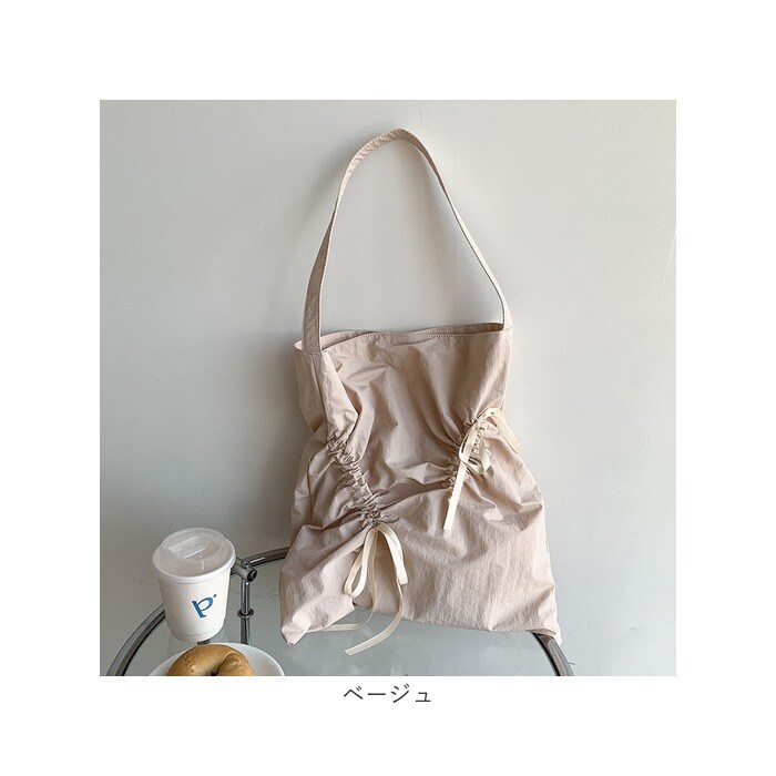 トートバッグ リボン くしゅくしゅ【ベージュ】