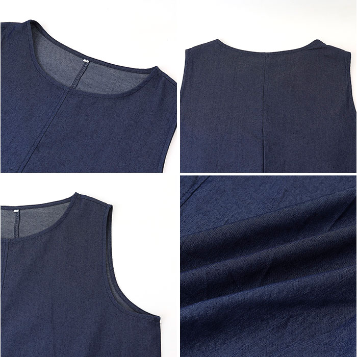ロングデニムワンピース ノースリーブ【ネイビー】【XLサイズ】