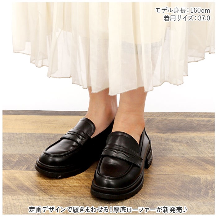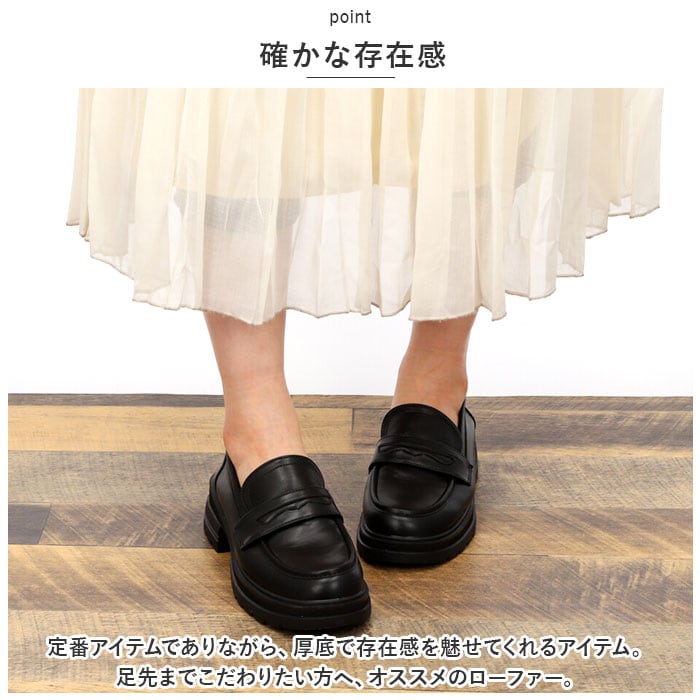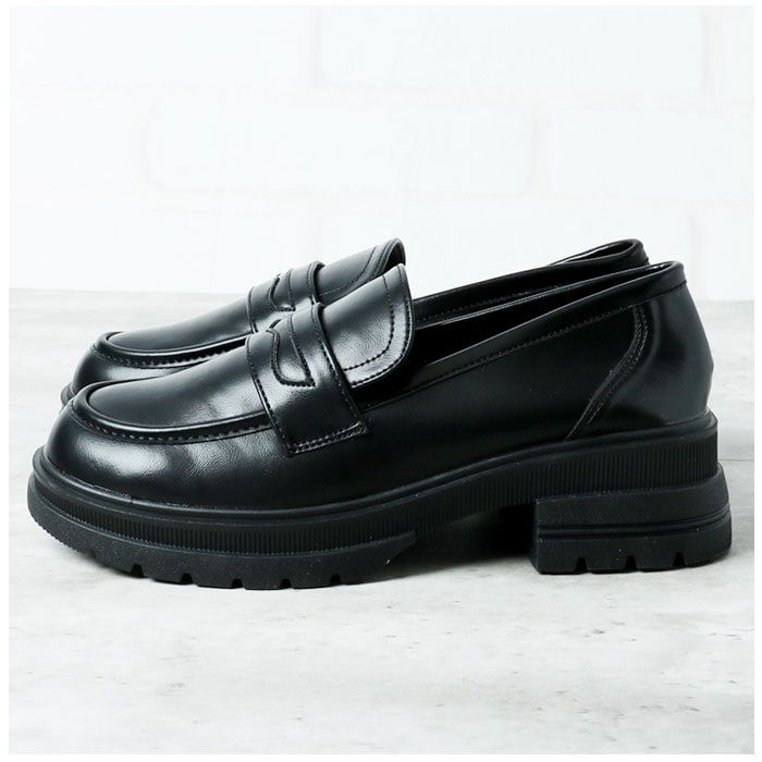 ローファー 厚底 シンプル mmlfr921f【ブラック】【38(24cm)】