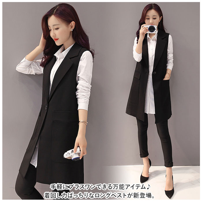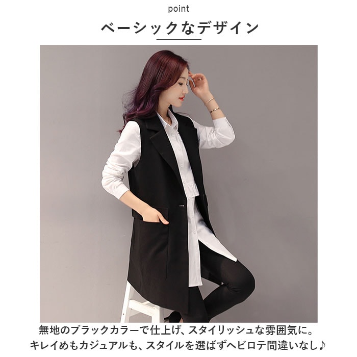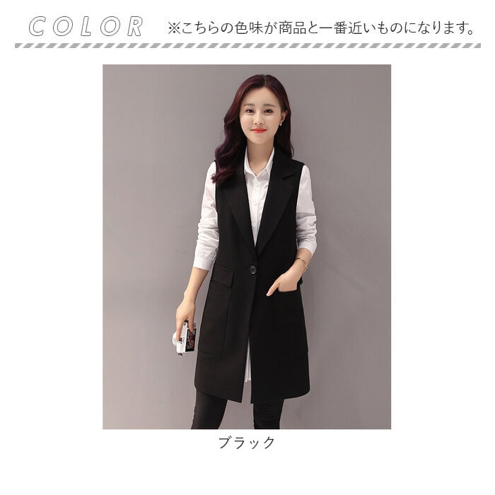 ロングジレ ベスト【ブラック】【Sサイズ】