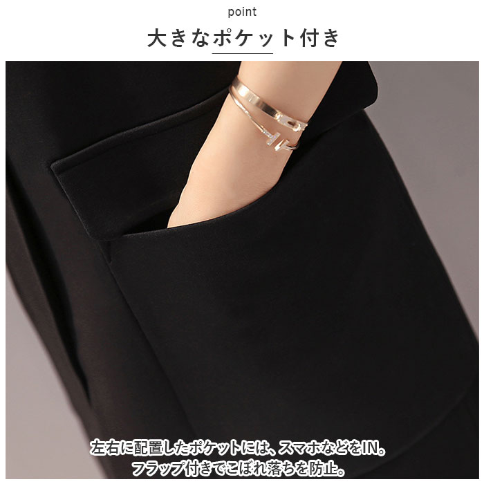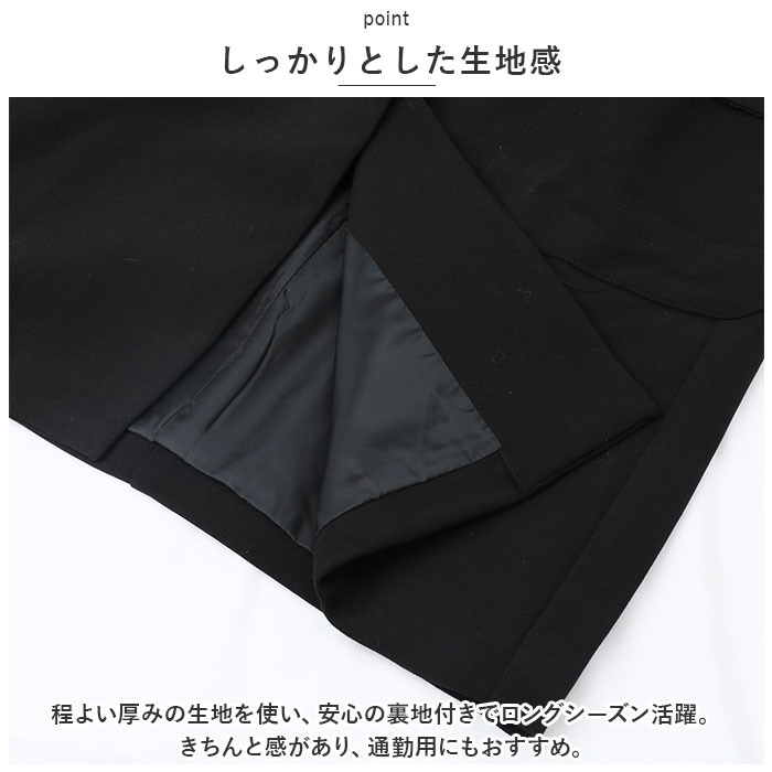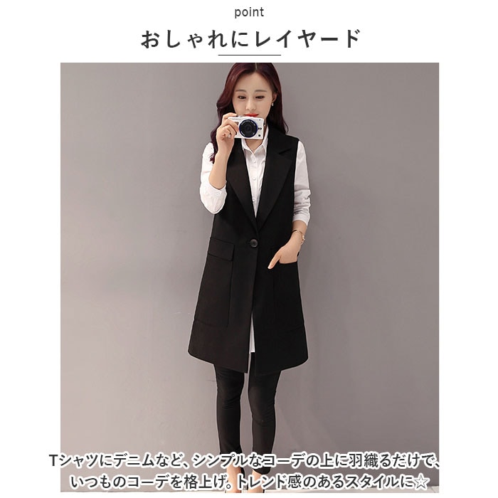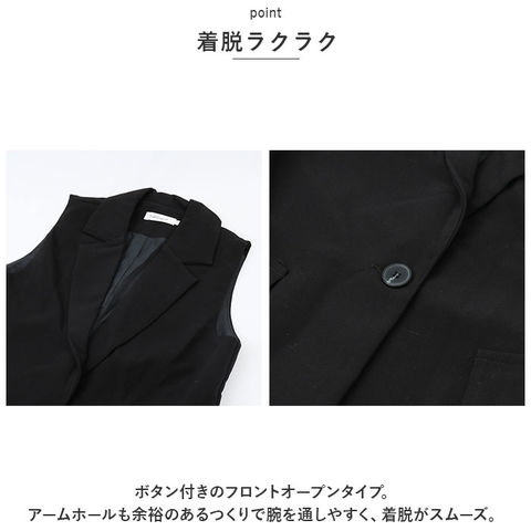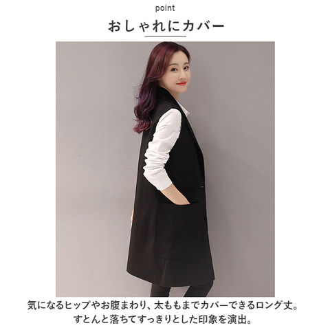 | 商品説明 | 手軽にプラスワンできる万能アイテム♪着回し力ばっちりなロングベストが新登場。【ベーシックなデザイン】無地のブラックカラーで仕上げ、スタイリッシュな雰囲気に。キレイめもカジュアルも、スタイルを選ばずヘビロテ間違いなし♪【おしゃれにカバー】気になるヒップやお腹まわり、太ももまでカバーできるロング丈。すとんと落ちてすっきりとした印象を演出。【着脱ラクラク】ボタン付きのフロントオープンタイプ。アームホールも余裕のあるつくりで腕を通しやすく、着脱がスムーズ。【しっかりとした生地感】程よい厚みの生地を使い、安心の裏地付きでロングシーズン活躍。きちんと感があり、通勤用にもおすすめ。【大きなポケット付き】左右に配置したポケットには、スマホなどをIN。フラップ付きでこぼれ落ちを防止。【おしゃれにレイヤード】Tシャツにデニムなど、シンプルなコーデの上に羽織るだけで、いつものコーデを格上げ。トレンド感のあるスタイルに☆ |