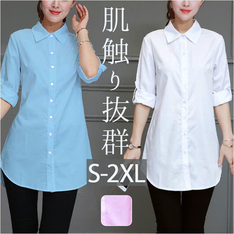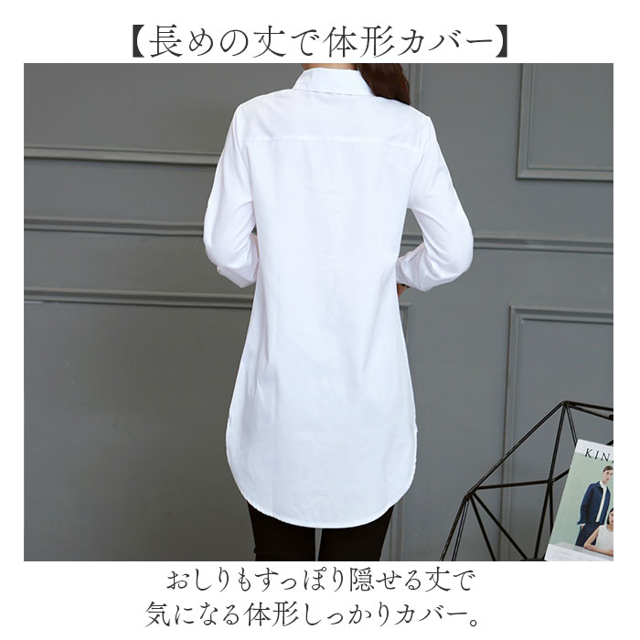 ロングシャツ 長袖 mmls25a【ホワイト】【Mサイズ】