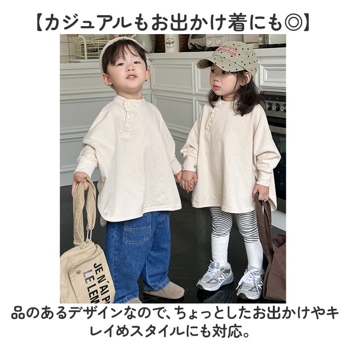 | 商品説明 | 【シンプルに見えてグッと垢抜け☆】おしゃれなポイントがたくさん詰まった「キッズ 長袖シャツ」が登場。【こなれ感満載のこだわりデザイン】今っぽいノーカラーに、斜めに入ったボタンがアクセント。シンプルなのにちゃんと存在感◎【おしゃれすぎるシルエットが魅力】前後差のある着丈にドルマンスリーブを掛け合わせたシルエットがたまらなくキュート♪【カジュアルもお出かけ着にも◎】品のあるデザインなので、ちょっとしたお出かけやキレイめスタイルにも対応。【男の子も女の子も似合うカラー】肌なじみのよいナチュラルカラーなので、男の子も女の子も着られる!兄弟でおそろいに☆【ロングシーズン活躍する】季節の変わり目、寒い季節は羽織と合わせて◎ロングシーズン使えるのもポイント。 |
