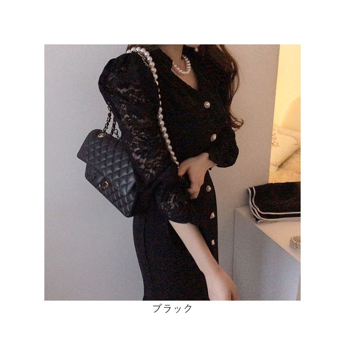 マーメイドロングスカート レース パーティードレス mmmdr28h【ブラック】【Mサイズ】