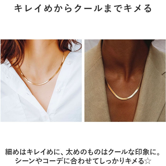 | 商品説明 | つけっぱなしOK!スネークチェーンでばっちり存在感☆「ネックレス」が登場。【デイリー使いに最適なシンプルさ】シンプルだけどちゃんと存在感のあるスネークチェーン。毎日使いにちょうどよいアイテム。【つけっぱなしOK!ステンレス製】金属アレルギーを起こしにくく変色に強いステンレス素材を使用。シャワーもつけたままでOK!【長さと太さが選べる☆】選べる長さと太さ。それぞれ雰囲気がガラッと変わり、どれも魅力的☆お好みをチョイス!【キレイめからクールまでキメる】細めはキレイめに、太めのものはクールな印象に。シーンやコーデに合わせてしっかりキメる☆【ギフトにも◎きっと喜ばれる】シンプルでデイリー使いにぴったりなアイテムなので、ギフトにぴったり!きっと喜ばれる♪ |