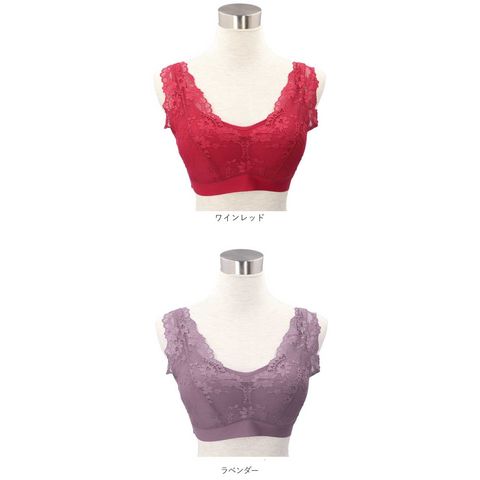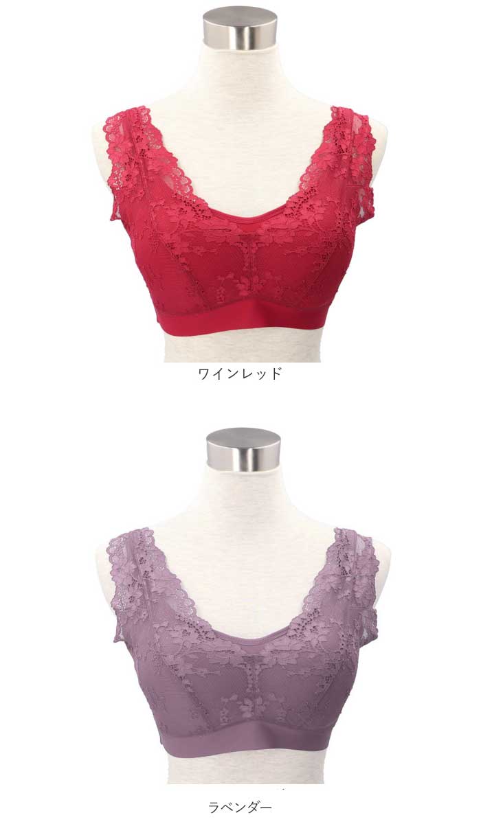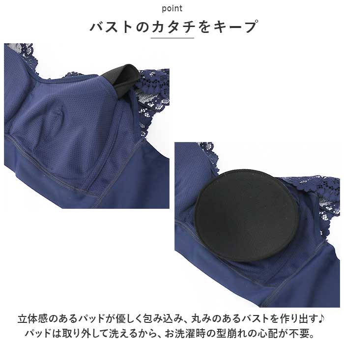 | 商品説明 | 簡単バストメイク♪おうちの中でも可愛くゆったり過ごせる、ノンワイヤーナイトブラが登場。【上品な印象を演出】表面にあしらわれたレースデザインが印象的♪カラーによって異なる雰囲気もポイント。【ストレスフリーな付け心地】窮屈感が苦手な方にぴったり。締めつけ感のないノンワイヤータイプ◎快適な睡眠時間も妨げない♪【バストのカタチをキープ】立体感のあるパッドが優しく包み込み、丸みのあるバストを作り出す♪パッドは取り外して洗えるから、お洗濯時の型崩れの心配が不要。【心地よい着用感】肌に直接当たるカップ部分は、サラッとした手触り。汗ばむ季節もムレにくく快適。【美しいシルエットをキープ】バストの揺れを抑えて横流れを防止する脇高設計。背中もすっきりキレイ魅せ。【使い勝手ばっちり】バックはサラッとシームレスな生地感で、薄手のトップスにも響きにくい!幅広ショルダーで肩にかかる負担を軽減。【4段階サイズ調節OK】背面ホックで着脱。自分サイズにフィット。【リラックスタイムにぴったり】付けている感覚が少ない軽やかさ。リラックスタイムのアンダーウェアとしてもおすすめ。 |